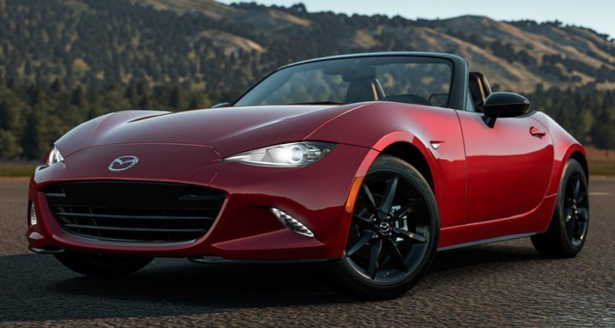 Depuis mardi, il est possible de télécharger gratuitement une extension de Forza Horizon 2. (ce qui impose de disposer préalablement d’une Xbox One et du jeu.) Dedans, vous trouverez une « NA » de 1990 (qui est, en toute subjectivité, la plus belle voiture de l’histoire de l’automobile), une « NB » Mazdaspeed de 2005 (version non-importée, équipée d’un turbo 180ch), le concept-car « NC » Super20 (vu au SEMA Show 2010) et donc, la nouvelle « ND » (avec le 1,5l ou le 2,0l ?)