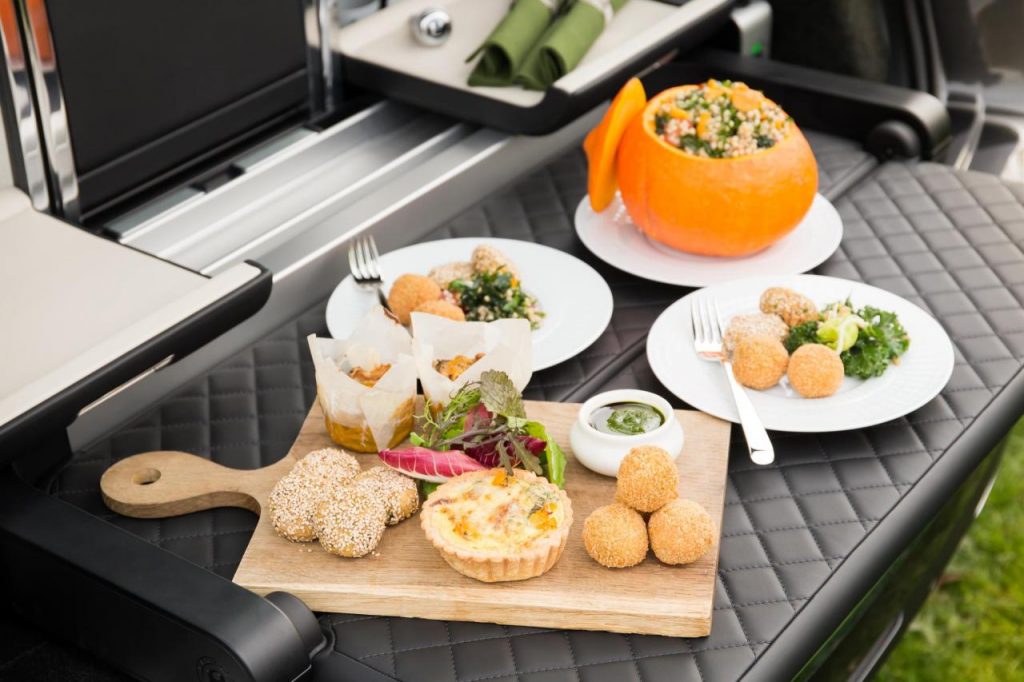 Le chef Gaven Fuller a cuisiné pour ses convives en bichonnant le meilleur des ingrédients possibles pour concevoir la carte. L’ensemble à pique-nique Bentley réalisé en collaboration avec le designer anglais Linley a servi entre la coutellerie, les verres, la vaisselle et autres ustensiles ou douceurs comme nappes, couverts, etc, etc.