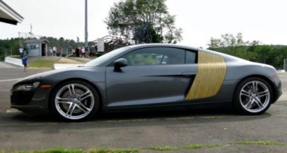 En voilà une drôle de préparation artisanale sur cette Audi R8 ! Oubliez les sideblades classiques. Non ici on joue la carte 100 % nature. Révolue la fibre de carbone, pensez au bois.