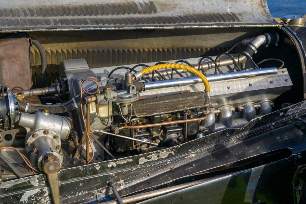 C'est cette option qui est suivie pour cette magnifique Bugatti Type 59 Sport qui appartient à la "Pearl Collection" à Zug en Suisse. En plus d'être strictement dans son jus, avec les affres du temps et de l'utilisation, cette Type 59 Sport a une histoire particulière. Construite en 1934 par la manufacture de Molsheim, cette Bugatti était une voiture de course. Elle a remporté des victoires en Grand Prix (époque pré-Formule 1) avec par exemple les Français Jean-Pierre Wimille ou René Dreyfus.