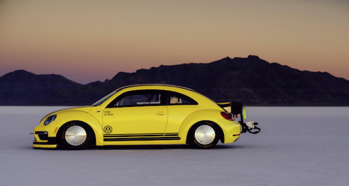 Les mauvaises langues me rétorqueront que cette comparaison est absurde. C’est vrai, car dès le départ, notre papillon et notre libellule n’avaient pas sous leur capot un 2 litres TSI turbocompressé de 550 ch. Baptisée Beetle LSR (Land Speed Record), cette Coccinelle a fait l’objet d’attentions particulières. Outre l’adoption d’un nouveau turbo, les ingénieurs ont retravaillé les pistons, les bielles, les arbres à cames et la culasse. Le couple atteint la valeur de 571 Nm.