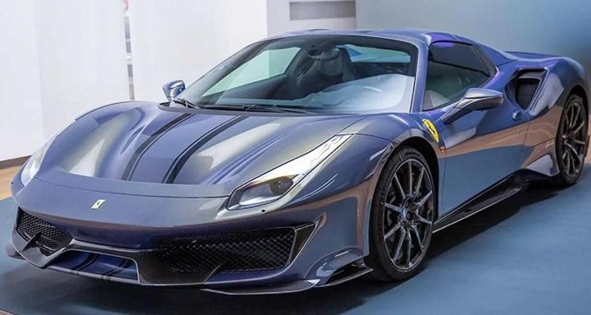Les préparations Tailor Made, chez Ferrari ou ailleurs, ne touchent pas engénéral à la mécanique (on conserve ici le bloc V8 3.9 litres biturbo de 720 ch et 770 Nm associé à une boîte automatique à 7 rapports avec mode séquentiel), et les clients sont souvent plus attirés par le « m’as-tu-vu » et l’apparence que par la performance ou l’optimisation mécanique. La peinture devient donc le nouveau terrain de jeu des extravagances. Vu de l’extérieur, cette 488 Pista se prendrait presque pour une création Mansory, les délires de carbone en moins. Et l’intérieur a échappé au massacre.