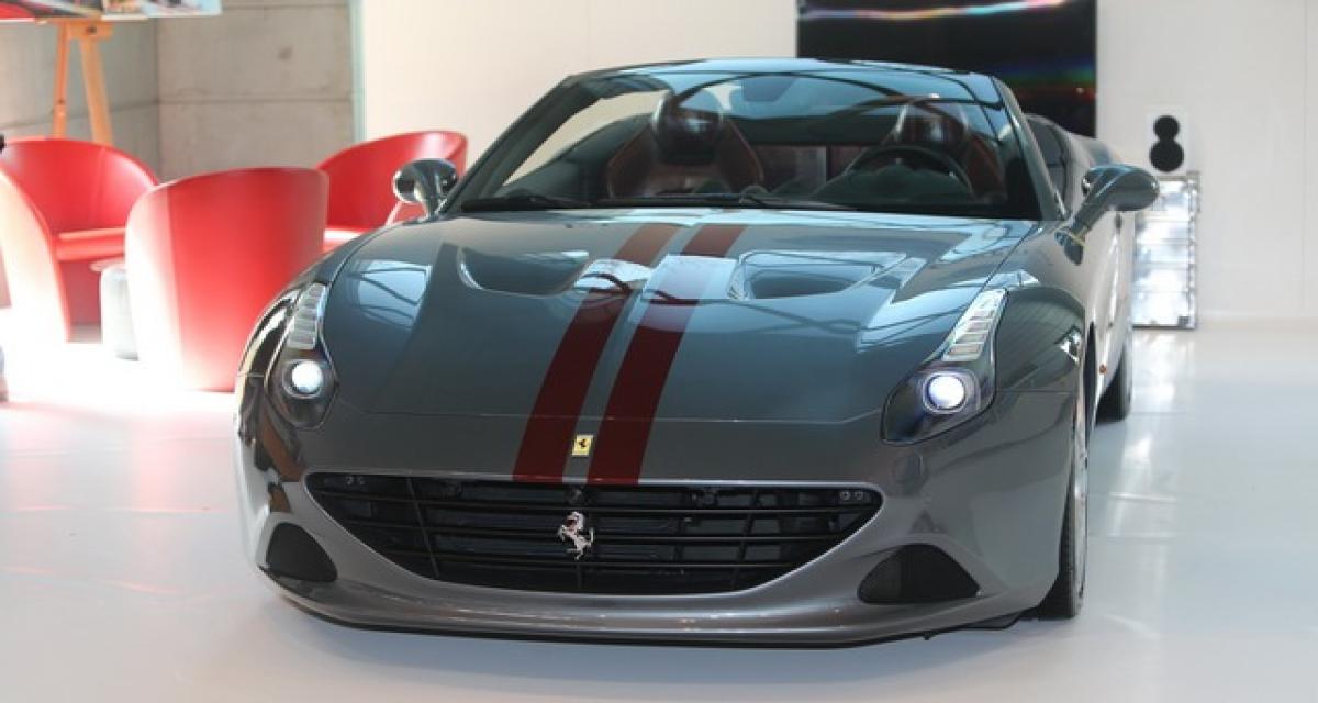 Le lien entre la fameuse 250 SWB (1964) du musicien Eric Clapton et une moderne California Ta laquelle adopte la même finition extérieure combinant la livrée de carrosserie ton gris et les deux fameuses bandes ton rouge.