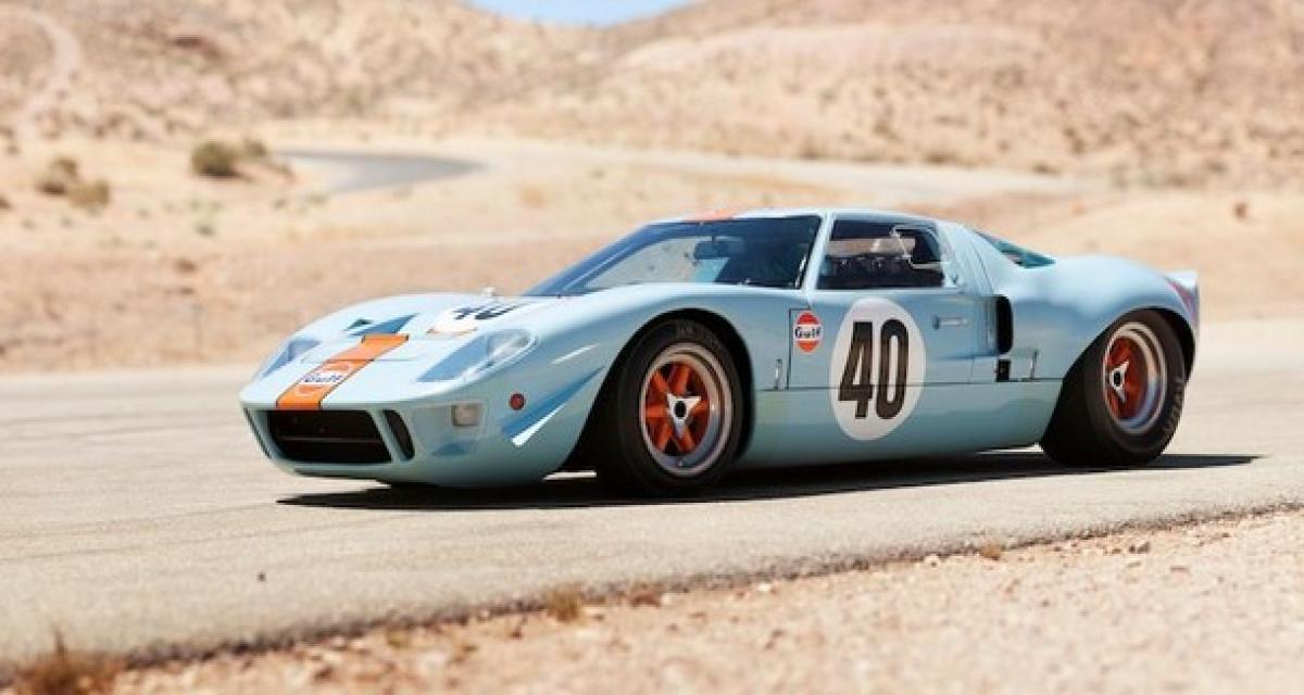 Il y a peu, deux rares exemplaires de GT40 se sont retrouvés sous la lumière des projecteurs après qu’RM Auctions ait décidé de les inscrire sur sa liste d’enchères, nous en avions d’ailleurs fait le bref historique. Ce week end, elles ont toutes deux été vendues, faisant parties qui plus est des 10 modèles ayant eu le plus de succès. La première GT40 de châssis P/1059, qui fut l’une des vingt voitures destinées à la promotion du modèle et l’une des six affectées à la société de Carroll Shelby, a décroché la septième place des ventes et s’est négociée à 2,86millions de dollars soit à peu près 2,3millions d’euros. La plus attendue était assurément la seconde, le modèle née Mirage M1 de 1967, qui a couru sous les couleurs Gulf et a participé au tournage du film Le Mans en tant que voiture caméra, a explosé les chiffres allant jusqu’à 11millions de dollars soit un peu moins de 9millions d’euros, un record. Il s’agit tout simplement de la vente aux enchères la plus chère de l’histoire pour une voiture américaine. Elle bat ainsi une Duesenberg Model J de 1931 vendue l’année dernière à 10,3millions de dollars.