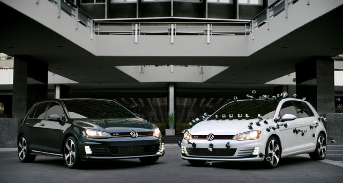 Volkswagen USA s’est ainsi rapproché de Tanner Foust pour cette opération. Un exemplaire de la Golf GTI, bardé de dizaines de caméras GoPro, passe devant l’œil de la caméra pour un spot publicitaire, une vidéo interactive précise la marque.