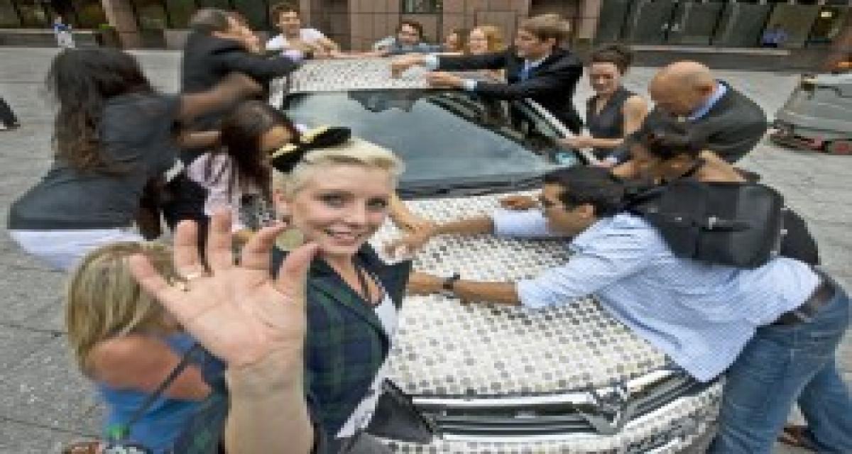 Voici donc la première « cash car » proposée de l’autre côté de la Manche. Une sympathique Vauxhall Astra dont la carrosserie a été recouverte de pièces pour un montant total de 2 000 £ (rapport avec le montant de la prime à la casse) et abandonnée à son sort sur la voie publique pour que les passants la délestent de ces espèces sonnantes et trébuchantes.