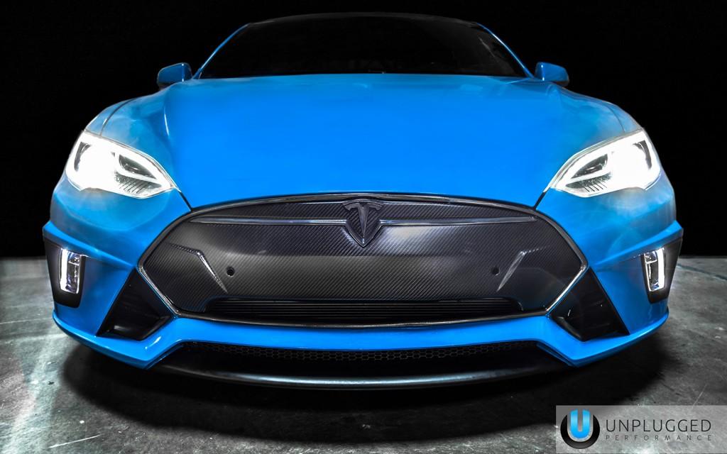 La Tesla S c’est la voiture favorite de Unplugged Performance. Si jusqu’à présent le préparateur se contentait de rajouter des bas de caisse, des bas de boucliers, ou des spoilers, avec cette proposition il va plus loin. En effet c’est une face avant complète que Unplugged Performance propose cette fois-ci avec outre un dessin assez agressif, des éléments actifs.
