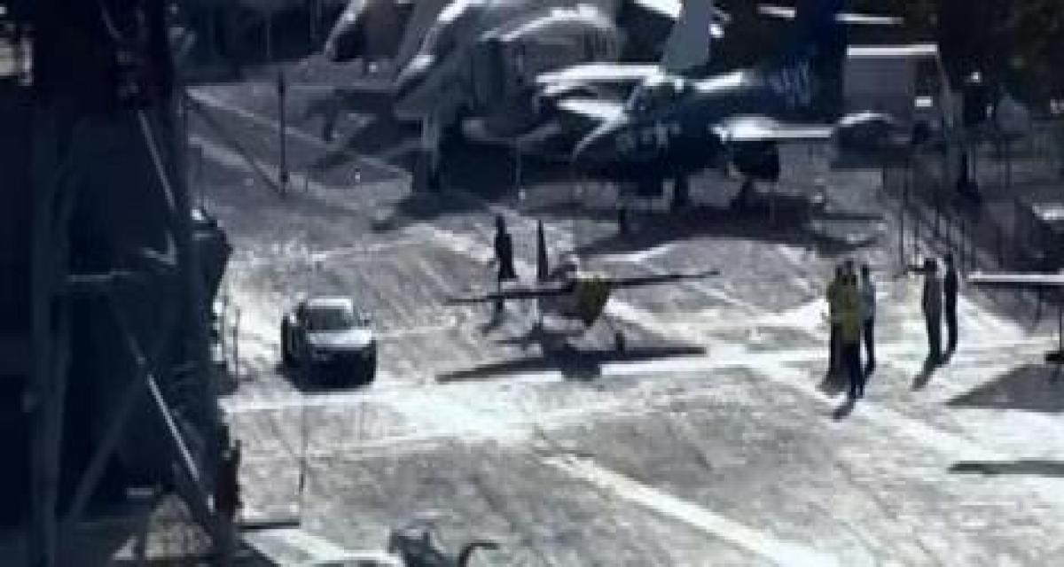 La scène se déroule sur le porte-avion US Midway, navire de guerre américain ayant participé aux guerres du Golfe et du Vietnam. Ambiance peace and love donc.
