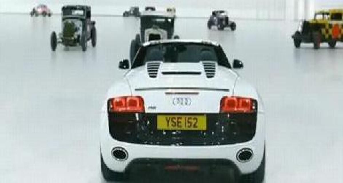 Les communicants de la firme aux quatre anneaux livrent la dernière publicité de l’Audi R8 V10 Spyder (celle qu’on reverra également dans Iron Man 2 dans le futur). Cette publicité baptisée « La belle et les bêtes » s’évertue évidemment à mettre en lumière tout le meilleur pour la supersportive découvrable allemande. Oui forcément une voluptueuse supersportive moderne contre de vieux hotrods fumants…