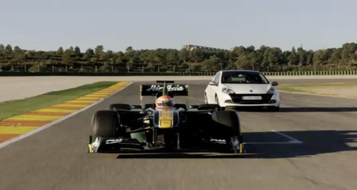 Le Team Lotus s’est souvenu que leur voiture est motorisée par Renault. En guise d’hommage, Heikki Kovalainen prend le volant d’une Clio RS et il s’amuse à doubler la T128 de Jarno Trulli…
