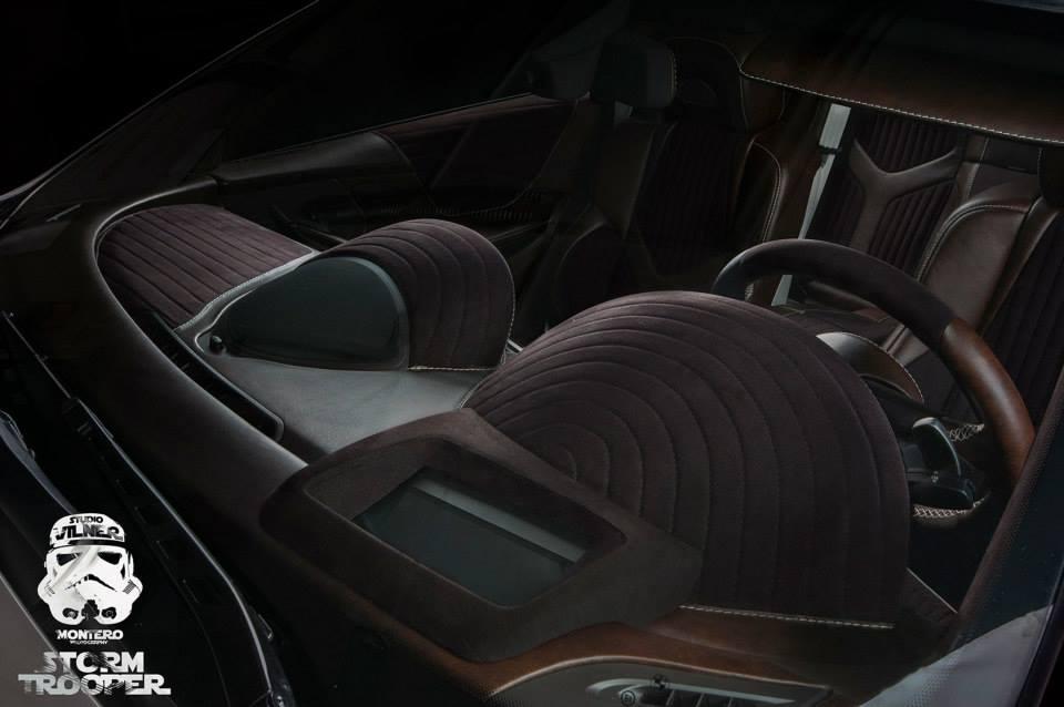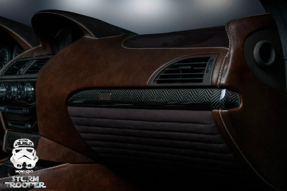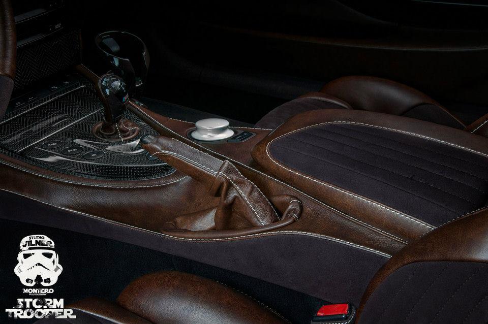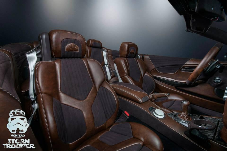 Un exemplaire qui bénéficie, habituel chez Vilner, d’un intérieur transformé entre des inserts carbone, cuir Nappa, Alcantara, cuir Nappa et Alcantara qu’on retrouve généreusement tendu ci et là. De quoi qui sait reproduire l’habitacle d’un croiseur de l’espace.