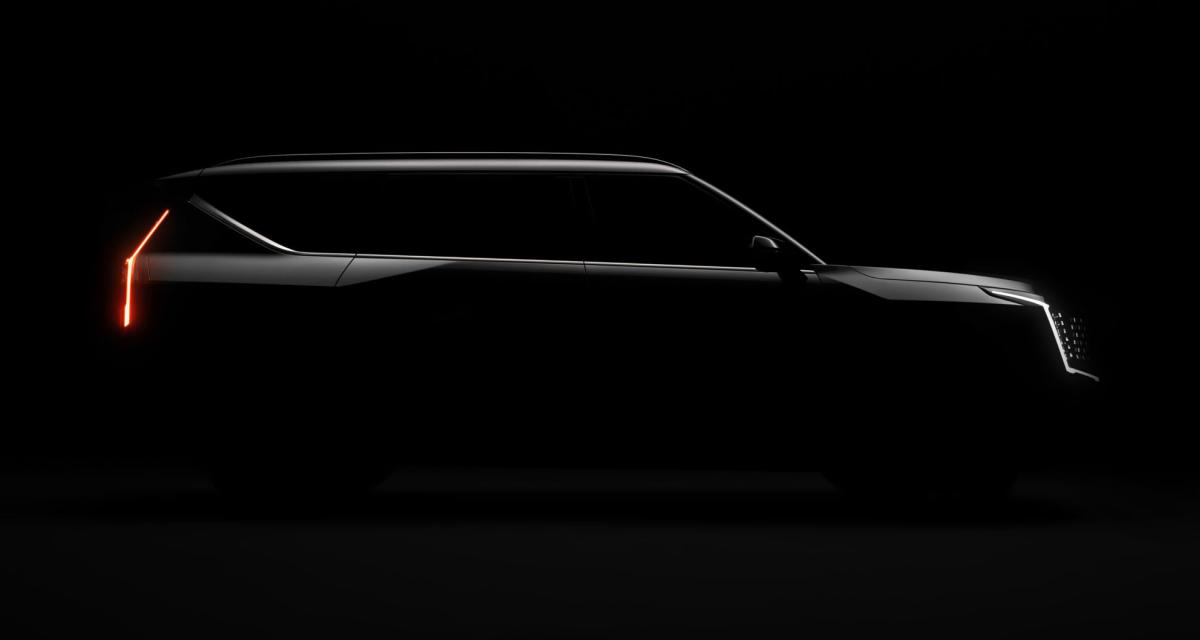 Selon le constructeur coréen, le Kia EV 9, 100% électrique, a "une silhouette élancée, une signature lumineuse distinctive et des lignes acérées qui donnent un avant-goût du design audacieux et affirmé de ce SUV 100% électrique". Sauf que sur les deux visuels proposés, on n'a pas vraiment un SUV à la ligne élancée. La silhouette a plutôt l'air massive, très "à l'américaine" pour ce SUV.