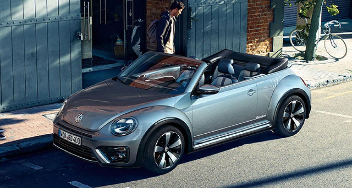 Nouvelles couleurs, quelques retouches de détail à l’intérieur, et surtout une nouvelle édition limitée « Denim ». Reprenant l’idée de la « Jeans Beetle » de 1974, elle arrive en couleur bleu pâle « Stonewashed Blue Metallic », et avec une ambiance intérieur dans les tons bleus avec textile évoquant la toile Denim. Et le cabriolet renforce l’idée avec une capote à couleur coordonnée (malheureusement non visible sur les photos officielles…).