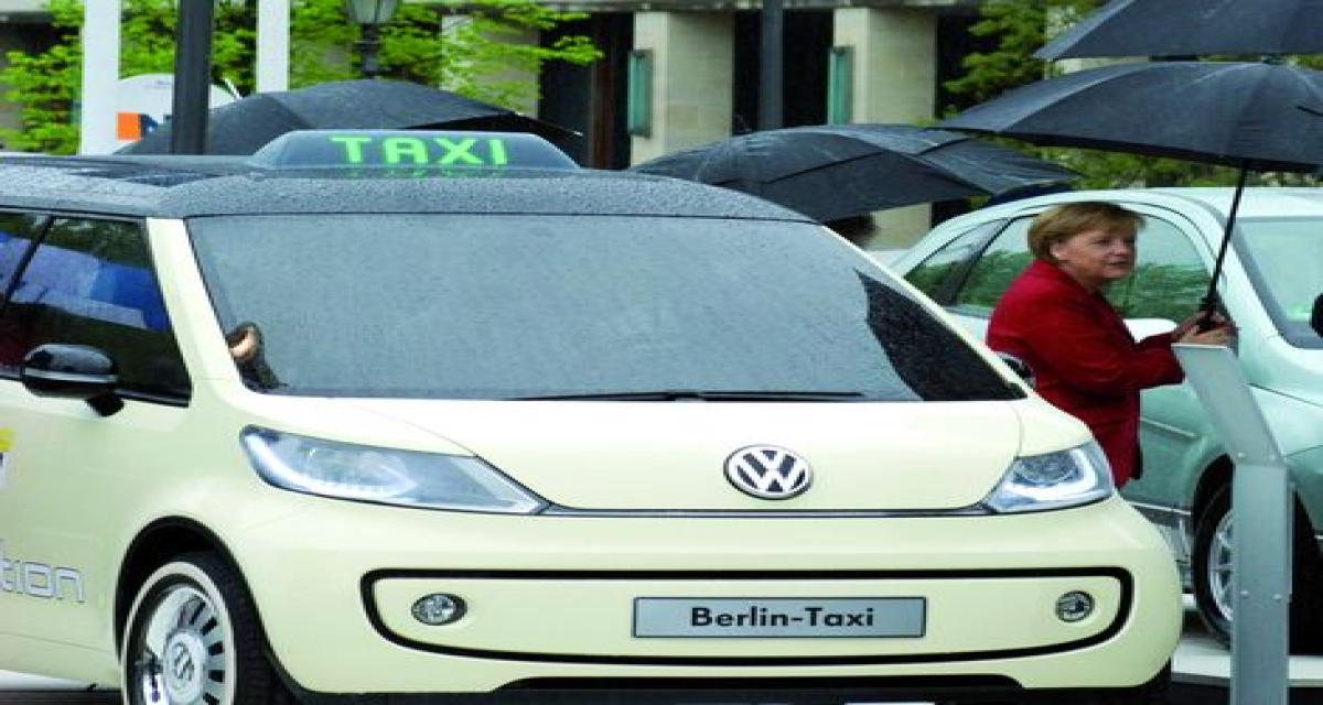 Présenté devant la porte de Brandebourg, le Berlin Taxi fait donc suite au Milano Taxi présenté il y a deux semaines à Hanovre. Il en reprend trait pour trait le design inspiré du Samba, ainsi que les caractéristiques techniques (moteur électrique, autonomie de 300km, vitesse maxi de 120km/h) ainsi que fonctionnelles (coffre interne, espace à l’arrière digne d’une limousine et écrans tactile pour chauffeur et passagers). Bien entendu, la carrosserie revêt la traditionnelle couleur crème des taxis germaniques.