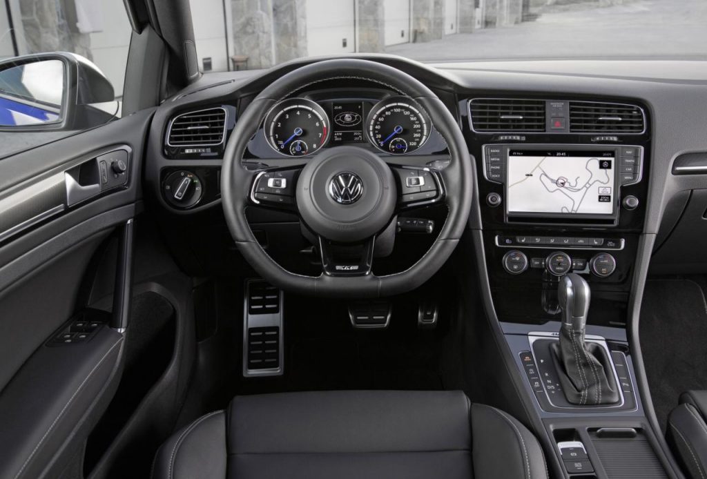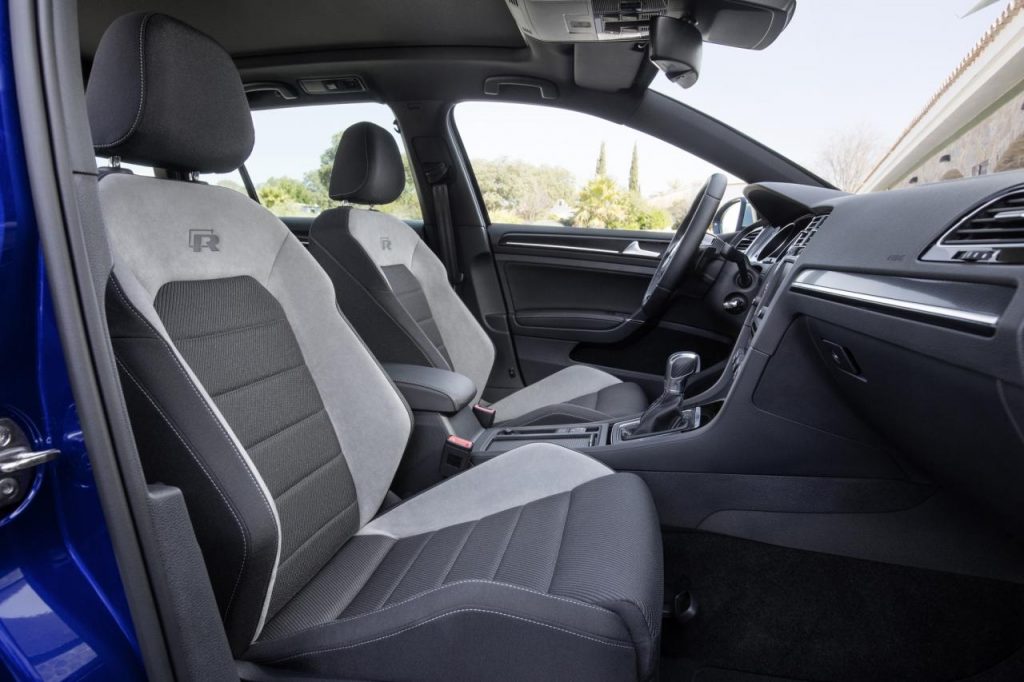 La Volkswagen Golf R SW, reposant sur la finition Carat, se distingue aussi par ses jantes alliage Cadiz de 18″, badges, sièges avant sport, spoiler arrière spécifique, diffuseur sport laqué noir, double sortie d’échappement, seuils de portes R, ordinateur de bord couleur, alarme antivol, etc.