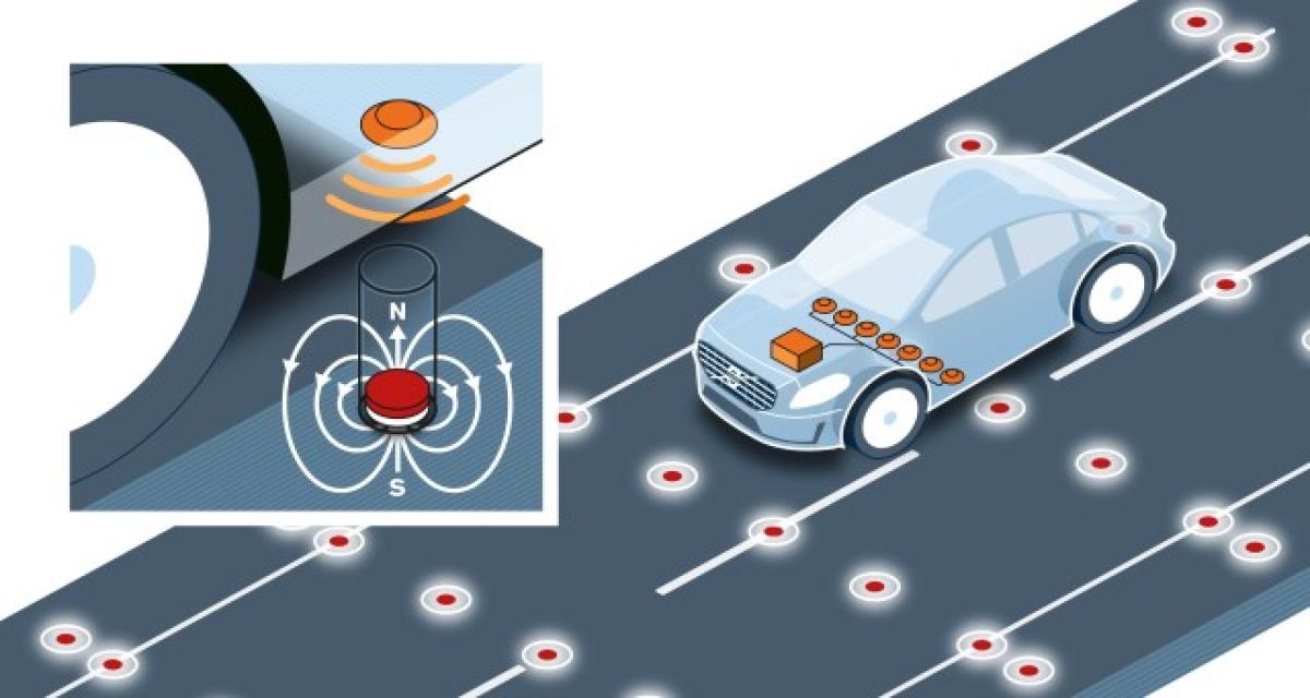 Dans le cadre du développement et de l’optimisation des véhicules à conduite autonome, le constructeur suédois a étudié la possibilité de localiser plus précisement le positionnement des véhicules sur la chaussée en implantant des aimants dans les infrasctructures existantes.