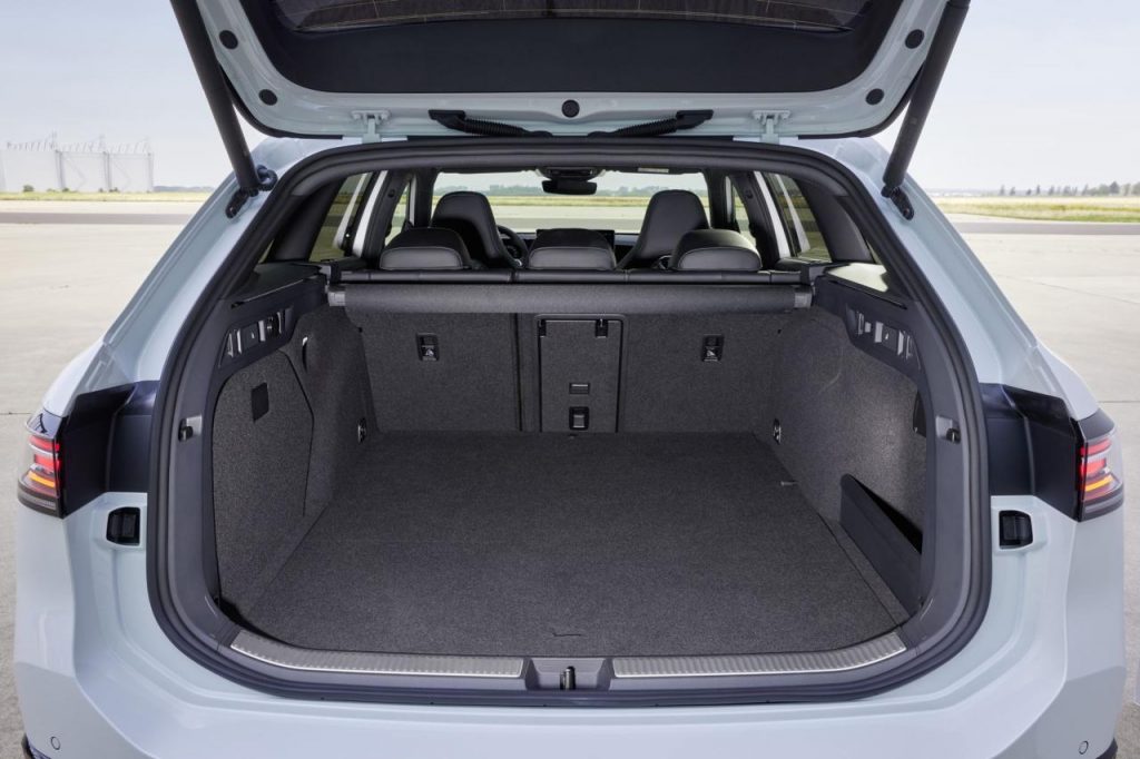 L'arrière est aussi profondément remanié avec un bandeau LED lumineux qui signe le hayon. En partie basse, il y a aussi un bloc noir qui allège un peu la silhouette. On remarquera que la lunette arrière s'incline, dynamisant le profil par rapport aux breaks Passat d'avant.
