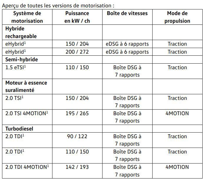 Sinon il y a la motorisation à hybridation légère (mild-hybrid ou mhev) sous 48 V. Cette technologie peut être mise sur deux moteurs essence turbo de 204 et 265 chevaux, mais aussi trois motorisations Diesel 2.0 TDI de 122, 150 ou 193 chevaux. En fonction des motorisations, cette Passat est traction ou sur les deux plus "gros" moteurs (265 ch essence et 193 ch gazole) on a la transmission intégrale 4Motion.