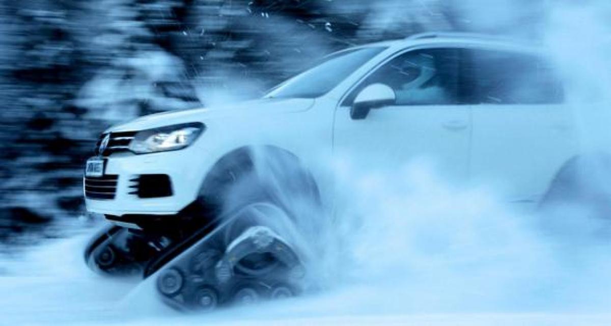 A mi-chemin (tous chemins) entre Snow et Touareg, voici l’inédit Volkswagen Snowareg, une initiative à mettre au crédit de la division suédoise de Volkswagen et dont les premiers tours de roues (enfin de chenillettes) remontent en réalité à l’an dernier.Ce Volkswagen Snowareg se veut en réalité un simili chasse neige du Volkswagen Touareg. Il est ainsi équipé de petites chenilles pour attaquer les pistes et avaler de la poudreuse sans le moindre désagrément…