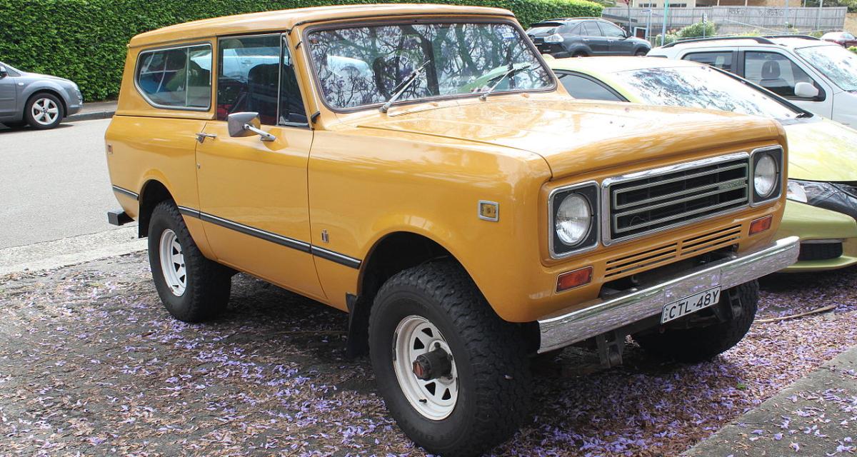 Ah l’International Harvester Scout! Un modèle américain mythique. A noter qu’elle fut aussi vendue en Europe sous la marque de luxe Monteverdi – la Sahara – légèrement retouchée par Fissore et équipée d’un moteur Chrysler.