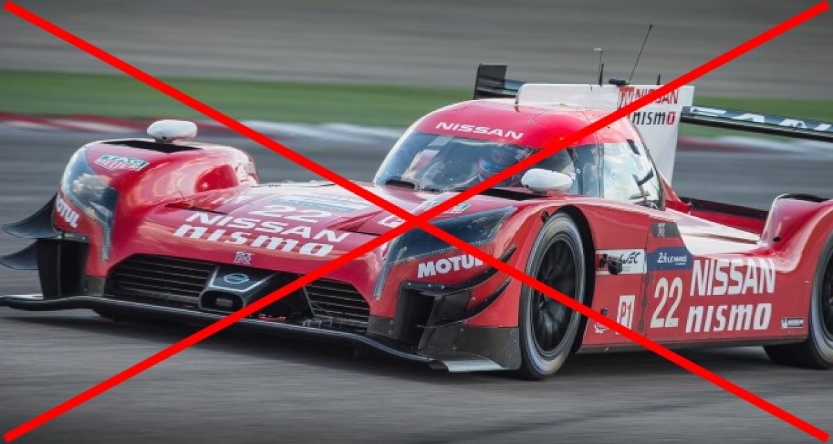 Nissan avait pourtant confirmé sa volonté de poursuivre en 2016 avec le projet de prototype traction à moteur avant GT-R LM Nismo mais il semble que le départ du principal soutien du projet Darren Cox a tiré trait définitif sur cette voiture et l’engagement qui allait avec. Des essais avaient quand même lieu encore tout récemment avec une voiture profondément revue, mais le constructeur précise : « la société est arrivée à la conclusion que le programme n’était pas en mesure d’atteindre les objectifs escomptés ».