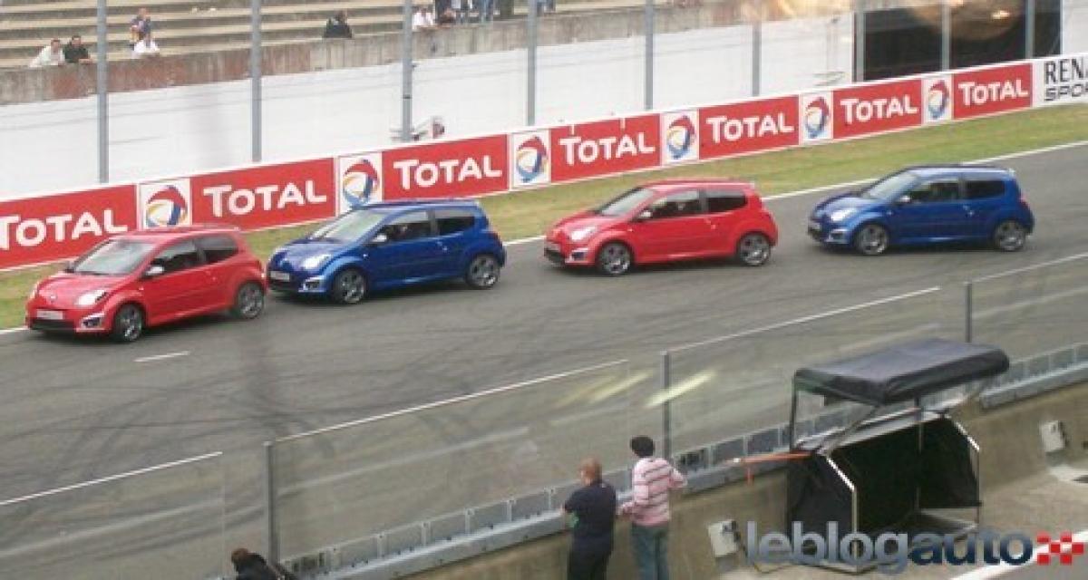 Entre deux courses, il y a des animations sur la piste. Des cascadeurs habillés en rugbymen se frôlent au volant de Twingo RS. C’est le « Renault Sport Show ».