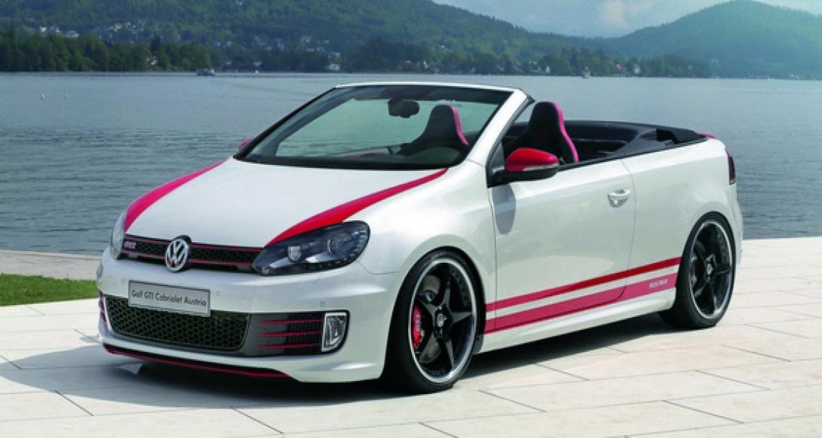 La mystérieuse auto teasée sous la bâche, c’était donc elle. Imaginée et conçue par treize stagiaires et apprentis, de 17 ans à 23 ans (quatre femmes et neuf hommes), travaillant dans quatre départements distincts, voici donc la Volkswagen Golf (VI) GTI Cabriolet Austria. Oui, Austria comme Autriche.