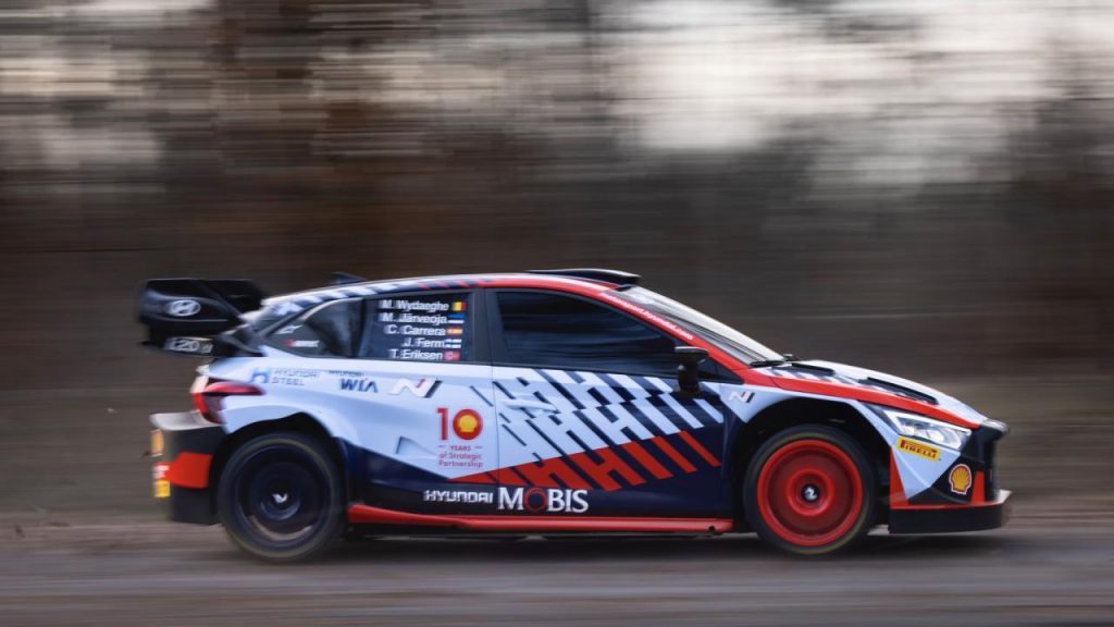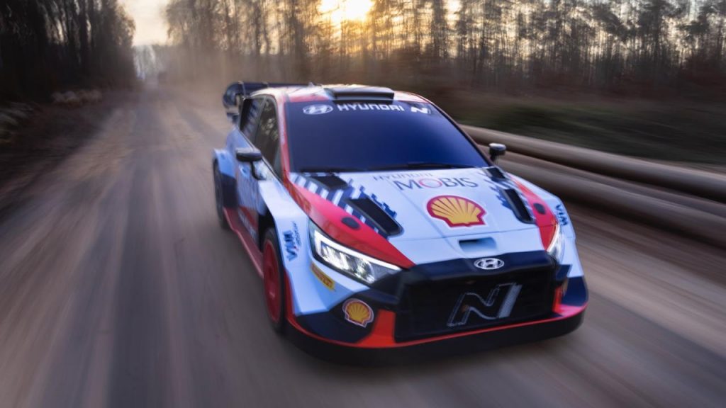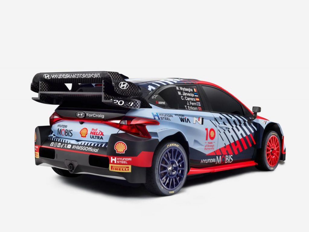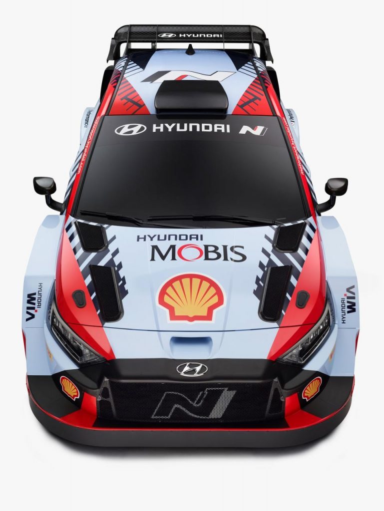 La livrée 2024 évolue plutôt pas mal par rapport à 2023. Oh ce n'est pas non plus une révolution. Hyundai MHSG conserve le rouge fluo, le bleu foncé et le bleu ciel. En revanche, la voiture est globalement plus claire qu'avant avec une prépondérance du bleu ciel sur la carrosserie. Le rouge reste structurant avec les lignes qui longent le capot, remontent sur les montants de parebrise et files sur le toit, ainsi que les bas de caisse, et bord de splitter avant.