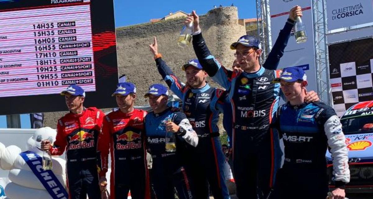 Plutôt choquant pour l’assistance et les autres concurrents, les Belges laissent éclater une grande joie non contenue, bientôt rejoins par le patron de l’écurie et le grand patron de Hyundai. Tout le monde considère qu’Evans est le vainqueur moral de ce Tour de Corse 2019. Mais les mathématiques et la loi du sport sont ainsi faites. C’est Neuville qui empoche les 25 points de la victoire.
