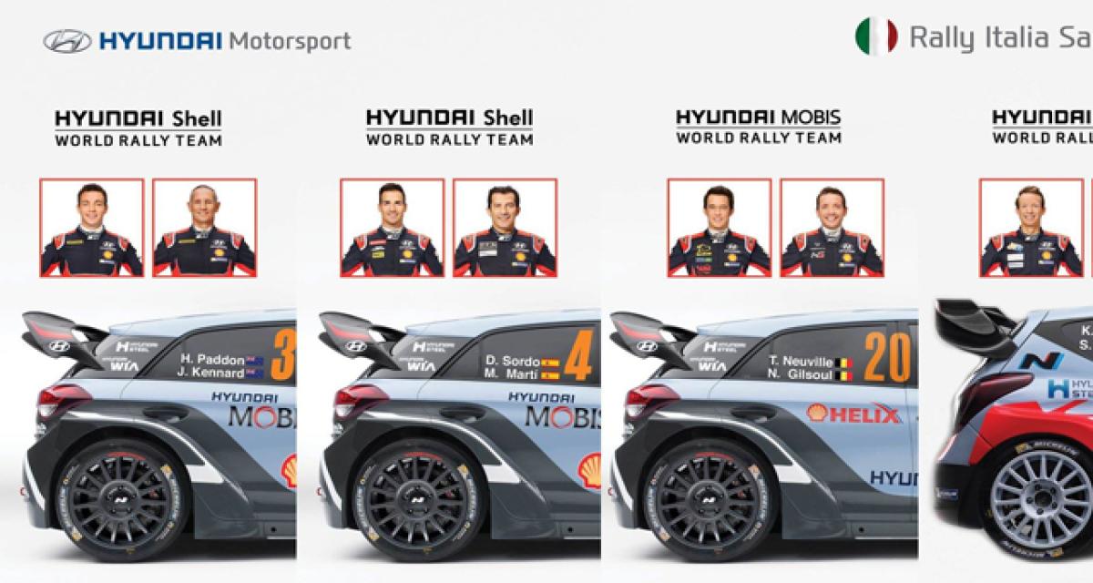 Hyundai Motorsport a communiqué ce matin la répartition de ses équipages dans ses deux équipes pour le rallye d’Italie qui se disputera la mois de prochain. Neuville est relégué dans la deuxième équipe de la marque.
