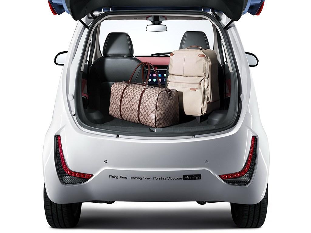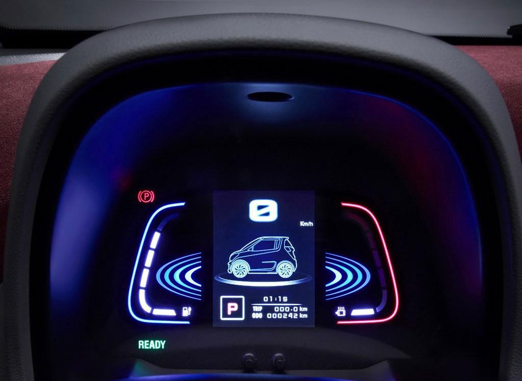 La E200 est donc la première « voiture » (hormis la E20 donc) créée par Zotye pour être un véhicule uniquement électrique. Cette petite citadine à deux places arbore un design moderne, avec force LED, surfaces laquées et chromes… S’inspirant d’une autre deux places, la carrosserie est en livrée bicolore, le noir étant imposé pour la partie centrale. Notons le hayon embarquant les feux, permettant de dégager l’accès au coffre.