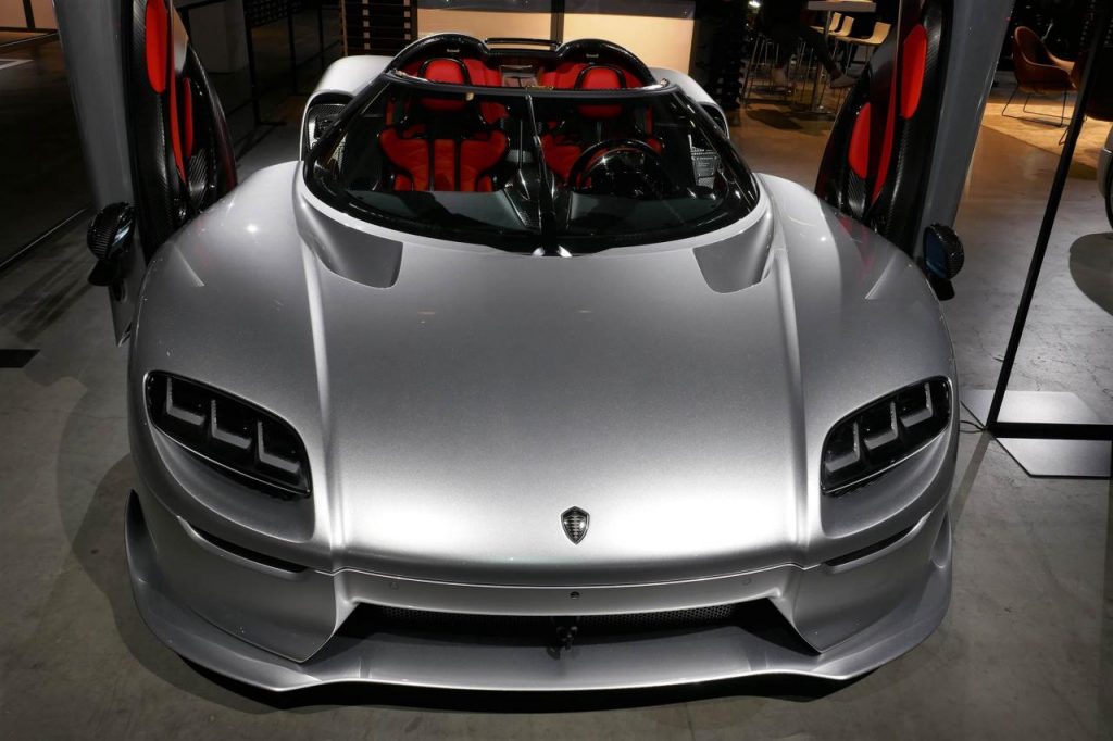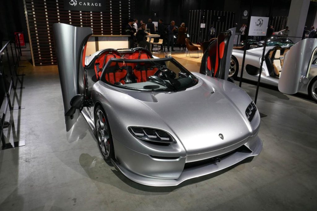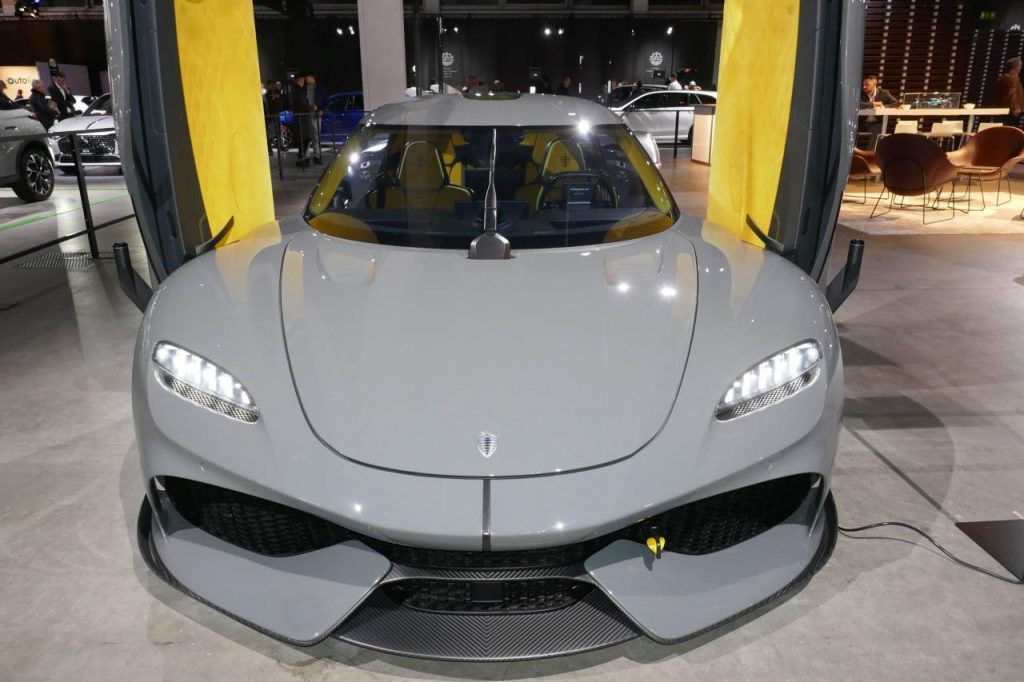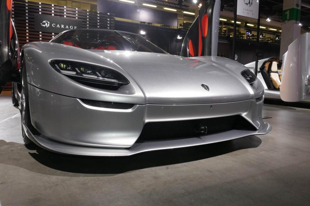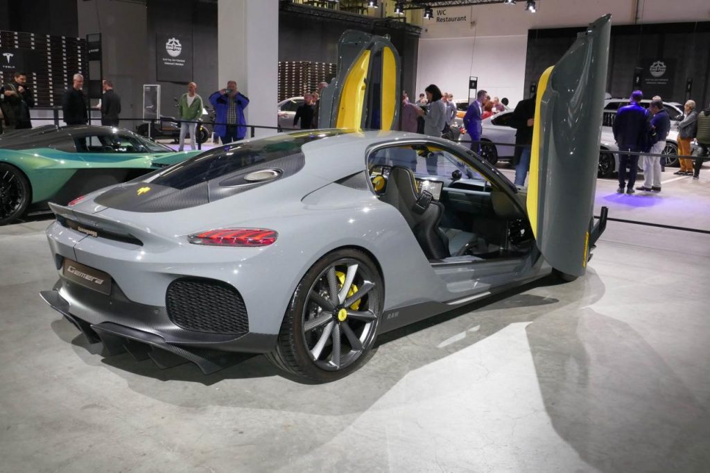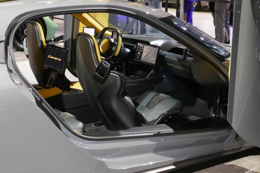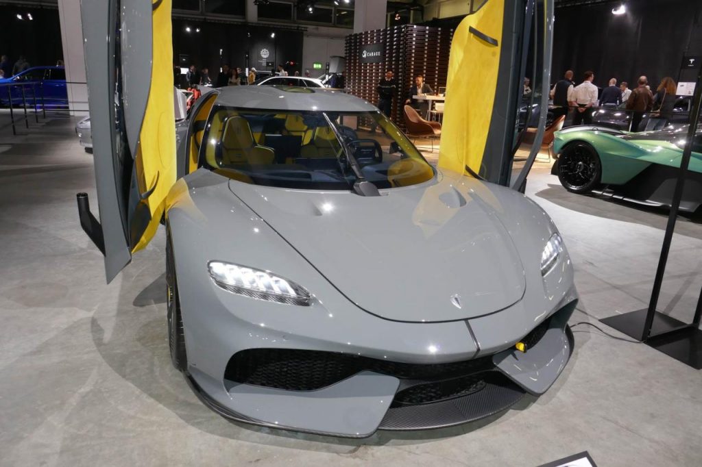 La troisième voiture du stand était la Gemera présentée en 2020. Elle doit être produite à 300 exemplaires maximum. C'est un PHEV (hybride rechargeable) animé d'un moteur 3 cylindres 2 litres bi-turbo de 600 chevaux aidé par une combinaison de moteurs électriques : 1 à l'avant de 400 ch et deux moteurs arrière de 500 chevaux. 1700 chevaux, 3500 Nm pour un poids de 1850 kg tout de même.