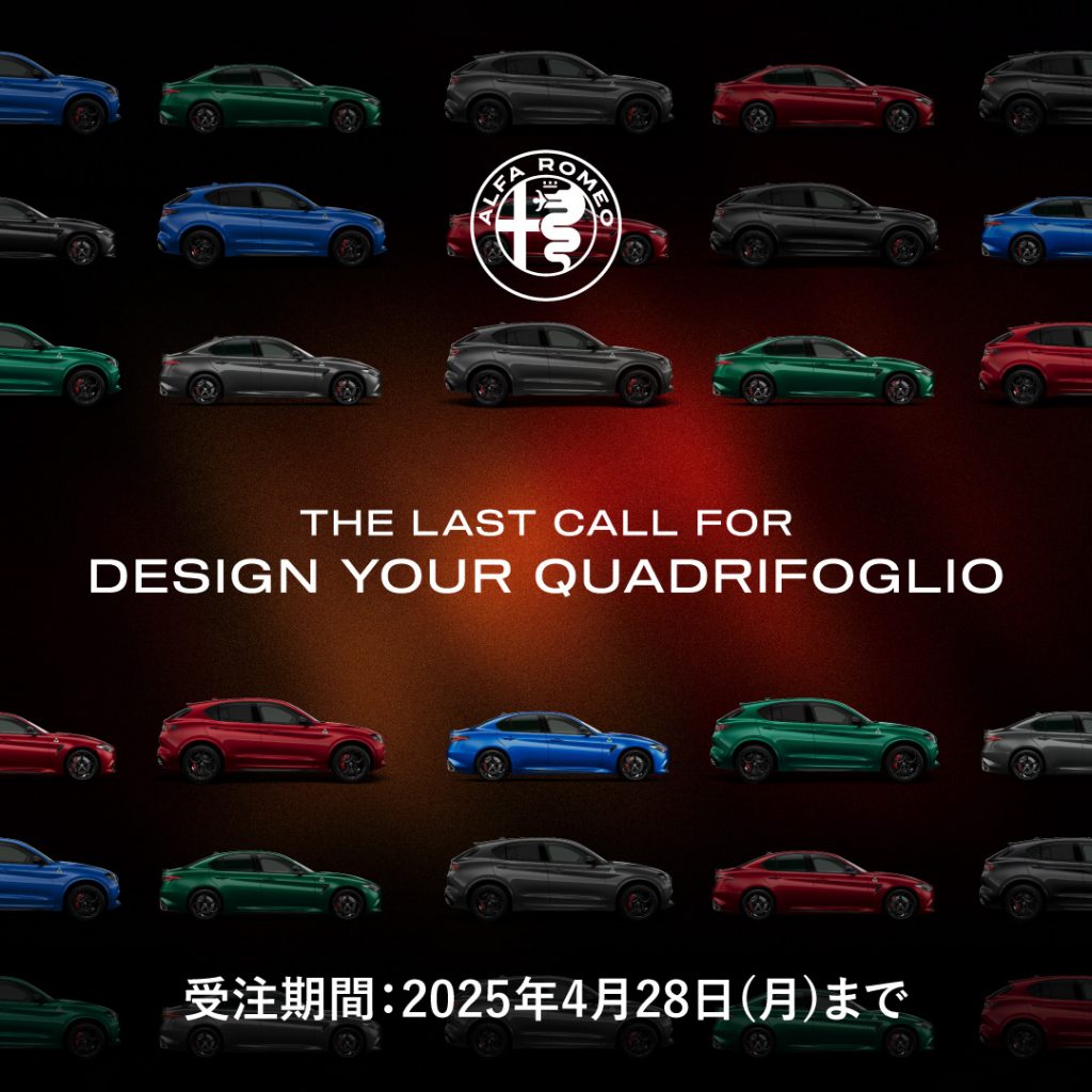 « The Last Call to Design Your Quadrifoglio » sera le dernier programme de commande personnalisée pour Quadrifoglio actuels, après le programme « Design Your Quadrifoglio » organisé en mars 2024 et le programme en cours « Design Your Quadrifoglio » pour les modèles Giulia à conduite à gauche.