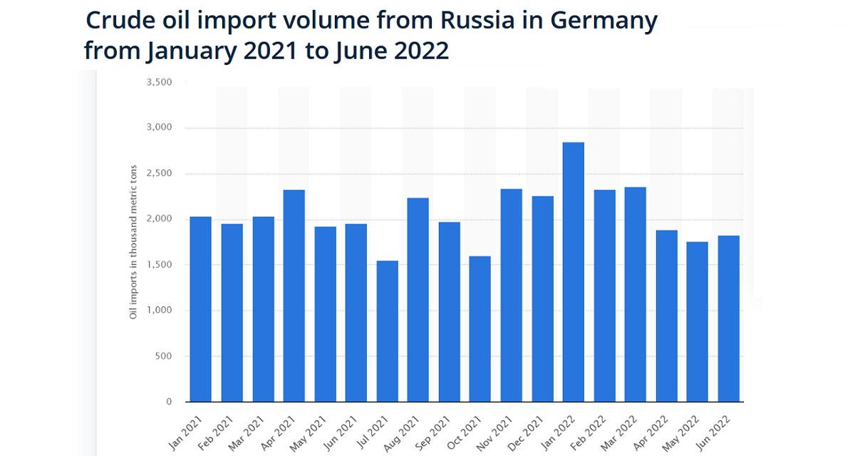 La réponse du gouvernement fédéral à une demande du groupe parlementaire de l'Union chrétienne-démocrate au Bundestag, dont le journal allemand « die Welt" s’est fait l’écho est claire : « un total d'environ 2,3 millions de tonnes de pétrole brut et de produits pétroliers ont été importés de Russie en juin ».