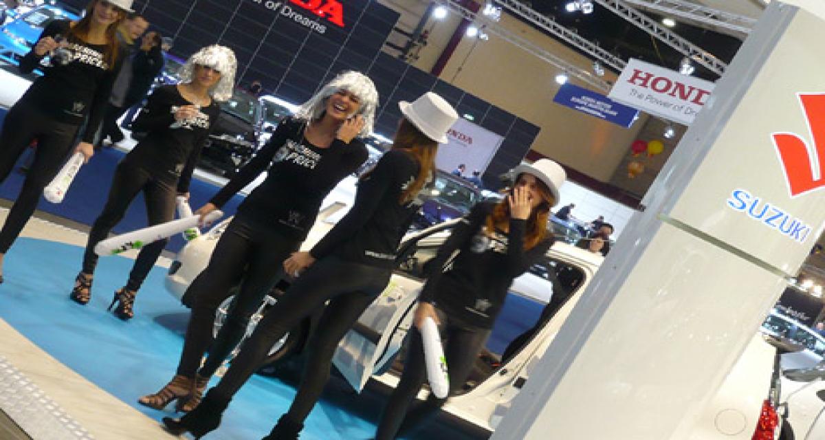 Il y a bien sûr les hôtesses, toujours charmantes et souriantes que ce soit chez Suzuki (les élargisseurs et bas de caisses noirs des Alto et Splash sont des accessoires. Mais si, regardez bien, en arrière plan !),