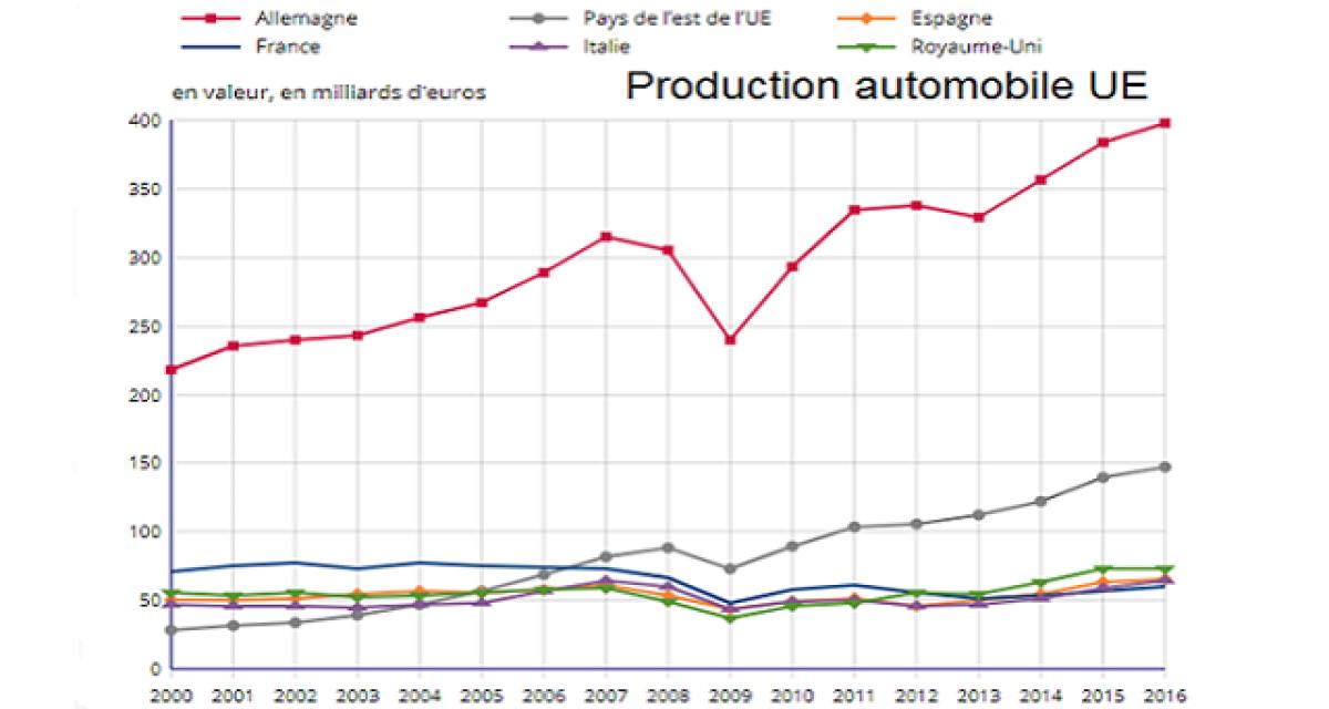 Les chiffres sont donnés en valeur, forcément dans ce cas l’Allemagne et le Royaume-Uni sont avantagés car leurs productions locales sont en partie de marques dites premium ou haut de gamme, en plus le il me semble que les utilitaires ne sont pas pris en compte. Si on regarde bien les productions des constructeurs Français qui ont été délocalisés, leurs concurrentes germaniques l’ont été tout autant, les Polo ou Corsa ne sont plus produites en Allemagne depuis un bail.