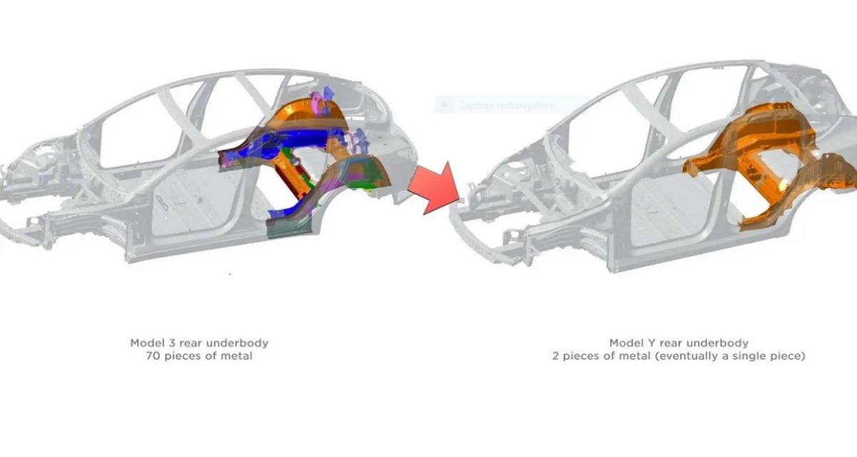 Pour rappel, Tesla a été un leader dans le gigacasting, une technique de pointe qui utilise d'énormes presses avec des milliers de tonnes de pression de serrage pour mouler des sections importantes du soubassement de la voiture. Sur un véhicule type, le soubassement peut être composé de centaines de pièces individuelles.