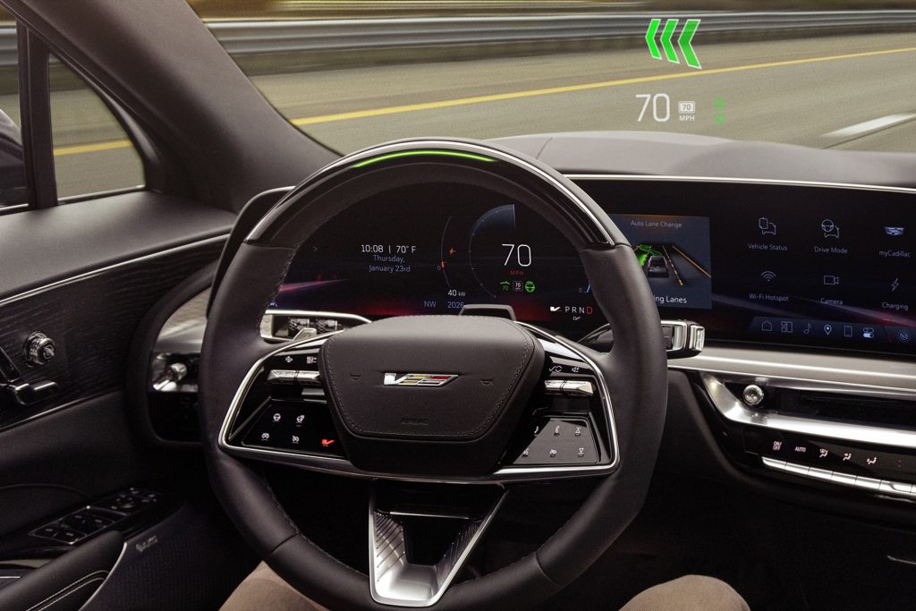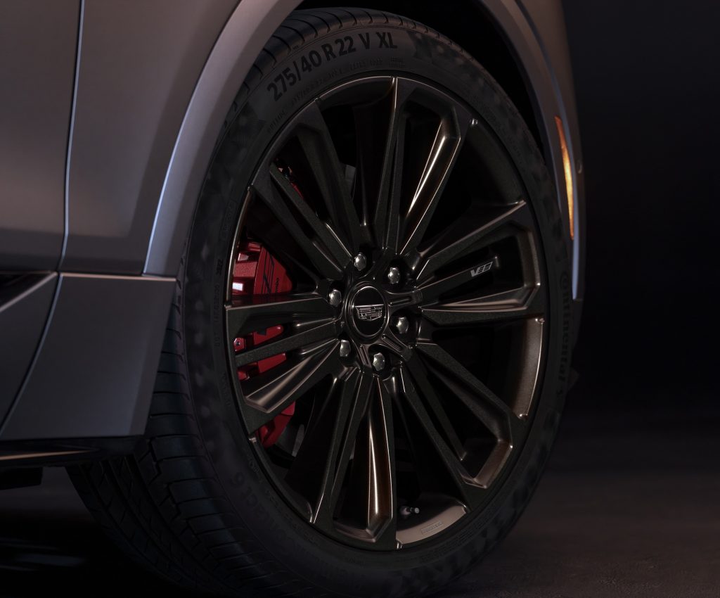 À l’intérieur, le véhicule emprunte des caractéristiques au Lyriq, telles qu’un toit panoramique en verre fixe, un système audio AKG à 23 haut-parleurs et un immense écran LED de 33 pouces. Cadillac distingue la Série V du Lyriq traditionnel en ajoutant le logo Série V, un bouton de mode V et une jante sport avec poignées. Parmi les autres caractéristiques uniques, citons une expérience d’infodivertissement personnalisée avec un « personnage Série V », une plaque de seuil de porte éclairée caractéristique de la Série V et des détails en V sur les dossiers des sièges.
