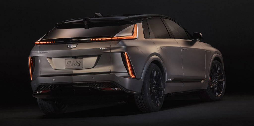 Le modèle V-Series se distingue du Lyriq traditionnel par un centre de gravité plus bas et des pare-chocs avant et arrière personnalisés. Il est également doté d’un badge V-Series sur les portes arrière et le hayon, d’un maillage en V sur la calandre inférieure et de roues de 22 pouces avec le logo gravé sur le côté.