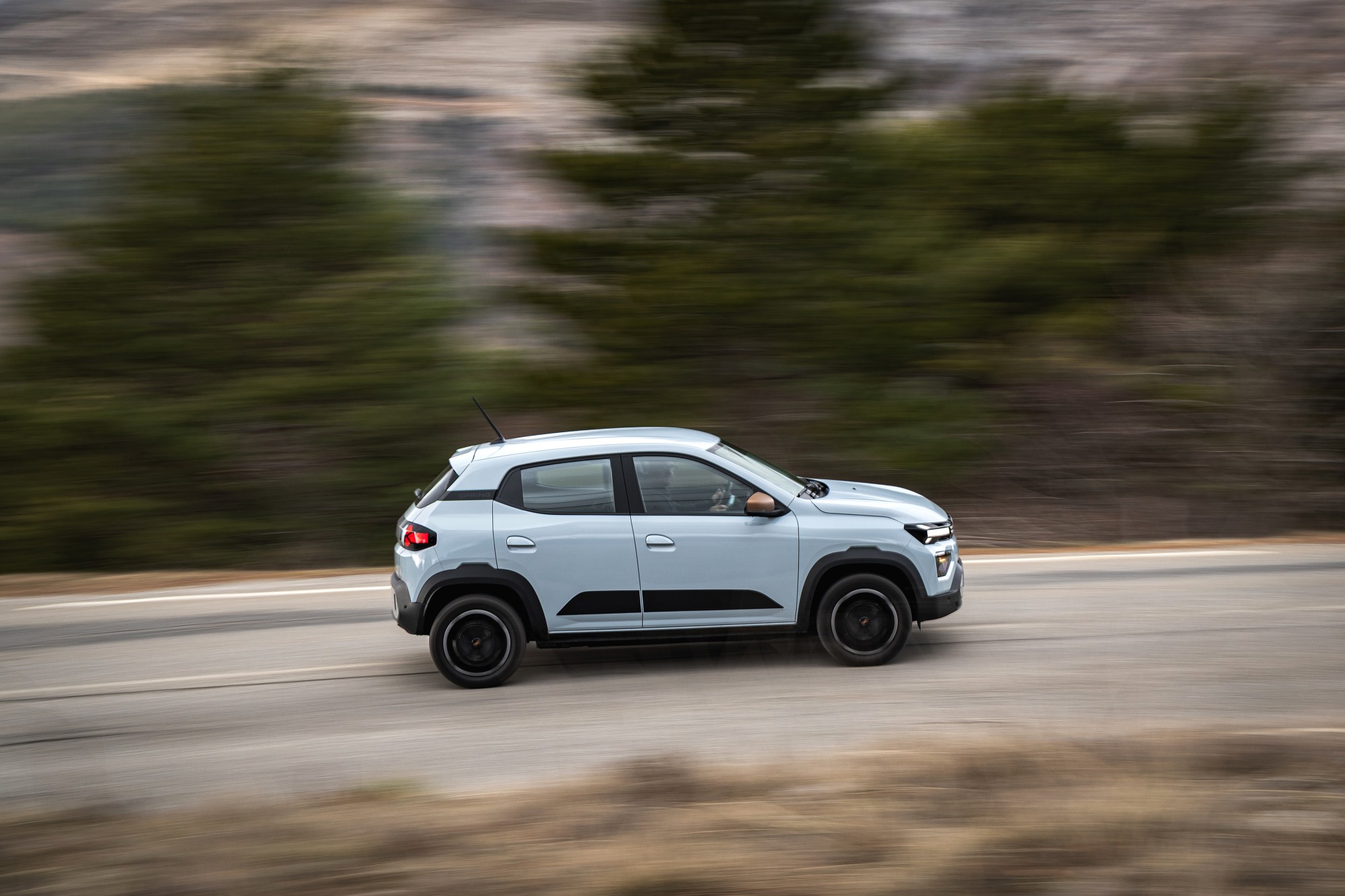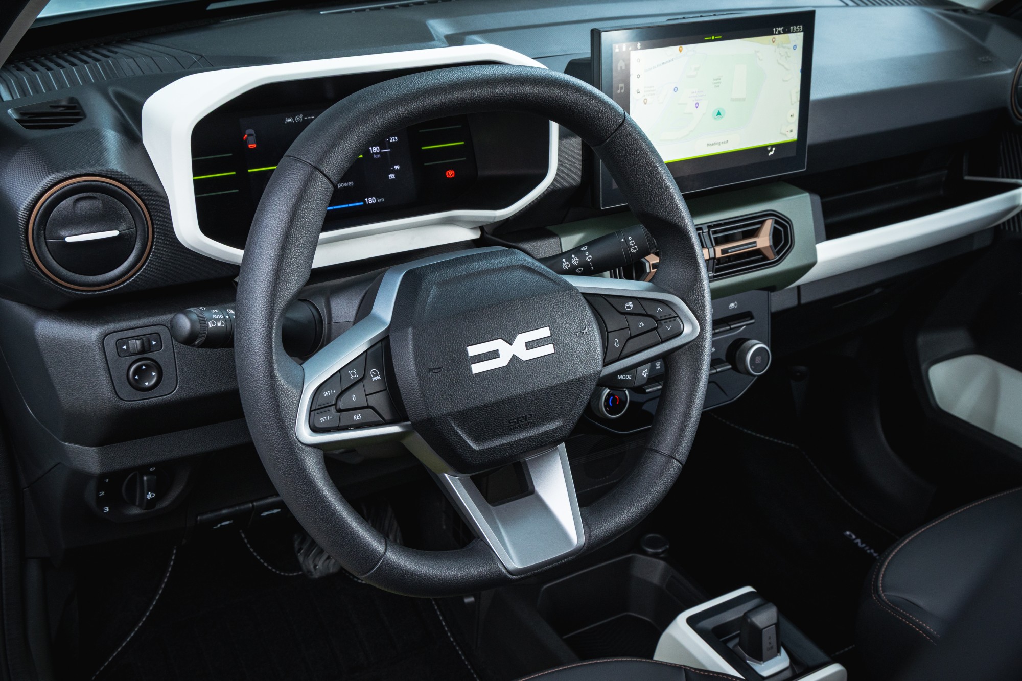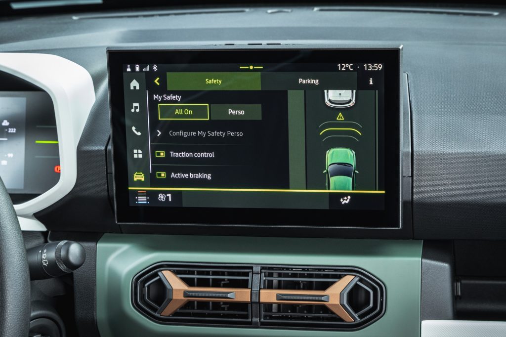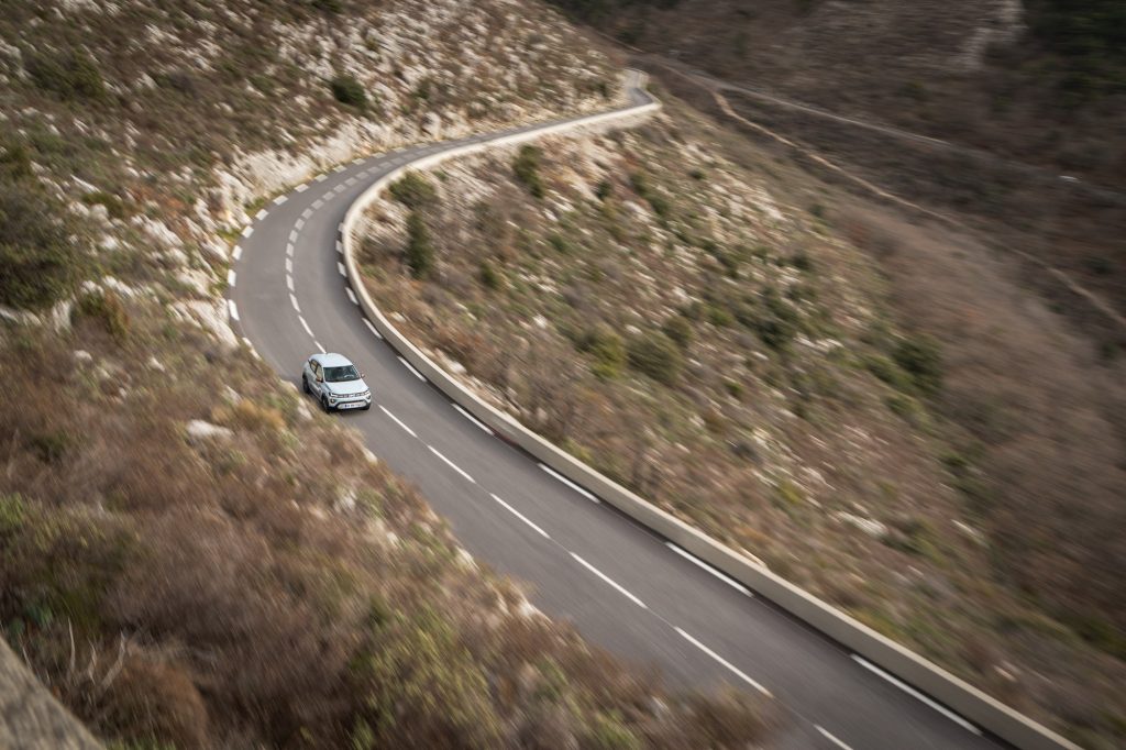 Justement, avant de partir, un regard sur les gommes nous surprend de la mauvaise façon. Les pneumatiques Linglong d’origine chinoise sont reconduits. Sauf que Dacia a travaillé sur son châssis, et la voiture n’a plus rien de la patineuse artistique, notamment sur le mouillé. Cette Spring de 100 ch sauce 2026 a droit à ce qui semble être la norme ailleurs, une barre antiroulis avant. S’il n’y avait que ça… On trouve aussi de nouvelles suspensions et plein d’autres petits ajustements. On ne conduit tout simplement pas la même voiture que nous avons connue à ses débuts. Elle ne s’avachit pas exagérément sur ses appuis, et garde raisonnablement bien son cap pour que l’on puisse parler d’une conduite plutôt sûre.