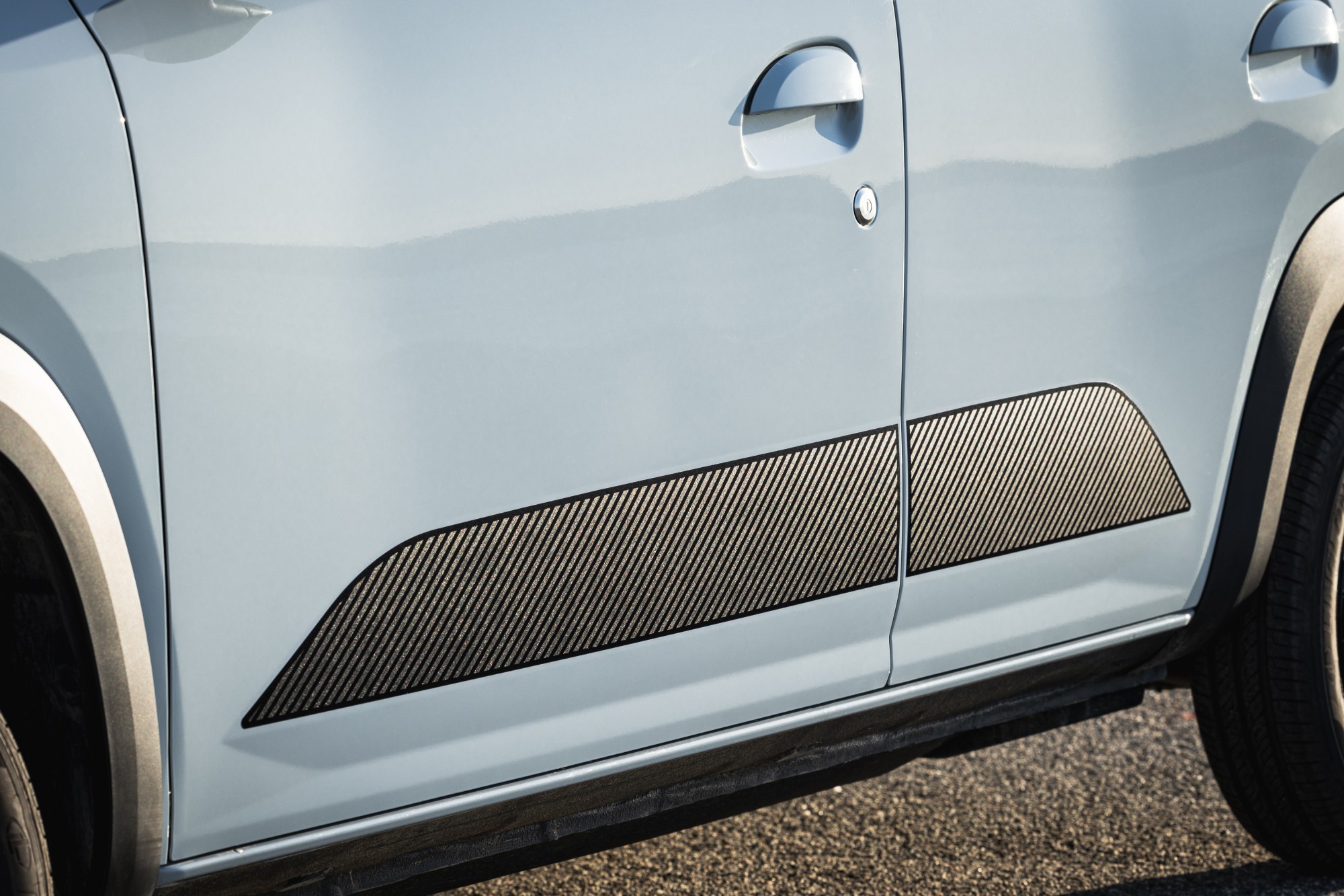 Pour autant, elle a toujours cette position sur la route un peu maladroite, notamment à l’arrière avec une carrosserie semblant surélevée sur des pneus fins. Elle n’a quand même pas l’air d’une voiture sans permis bodybuildée. Qu’on ne s’y trompe pas, on ne la prendra pas pour ce qu’elle n’est pas. Elle a toutefois ce petit quelque chose de rafraîchissant dans un paysage où les voitures sont de plus en plus grosses. Oui, elle semble cantonnée exclusivement à la ville. On note quelques petits détails appartenant à un passé pas si lointain, comme la tige servant d’antenne radio. Avec ses imposants pare-chocs et ses élargisseurs d’ailes en plastique brut, elle paraît parée aux chocs typiques d’une vie urbaine.