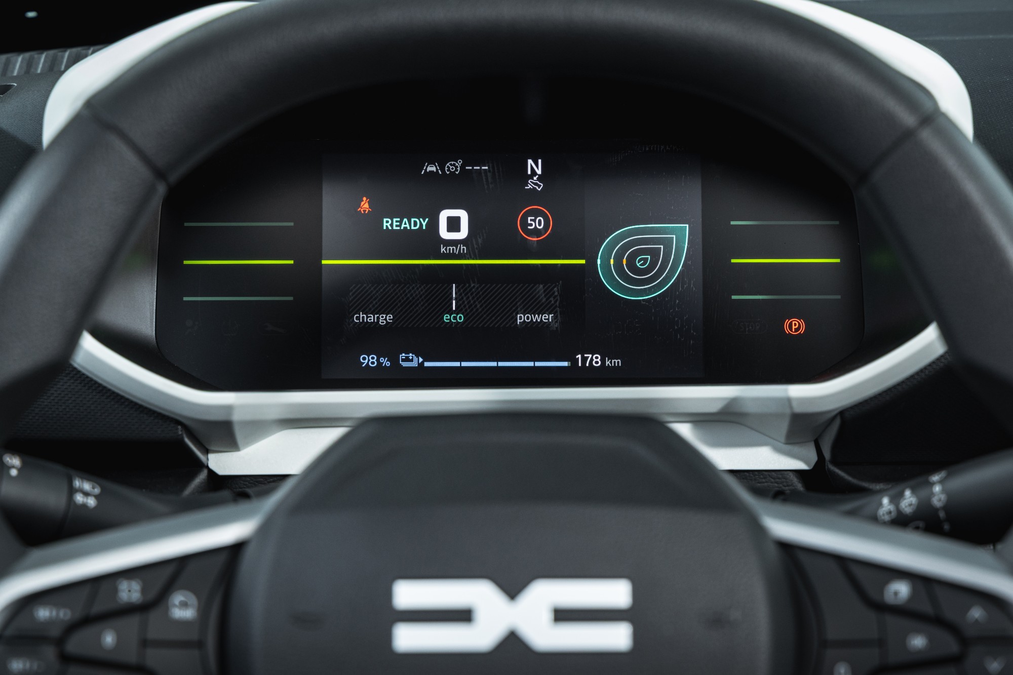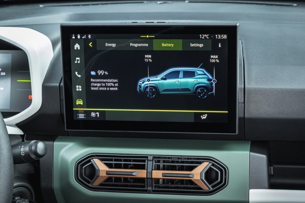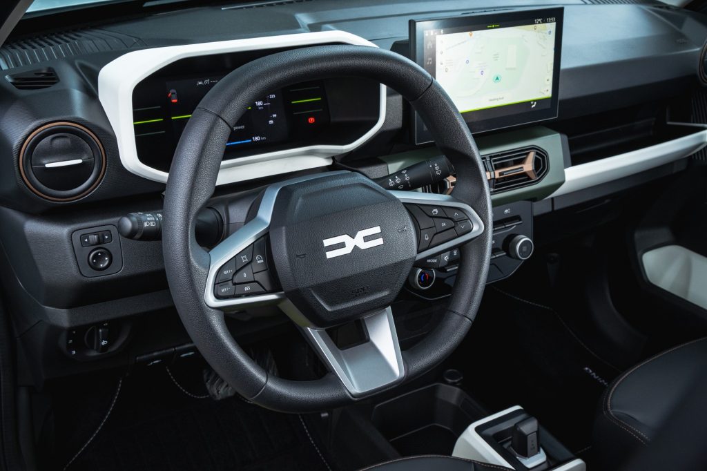 Question autonomie, la fiche technique parle de 225 km. Pour cela, Dacia se repose sur une nouvelle batterie LFP (Lithium Fer Phosphate) de 26,8 kWh au lieu d’une NMC (Nickel Manganese Cobalt) pour une meilleure durée de vie et plus de sécurité. Les plus observateurs l’auront remarqué, ça n’ajoute pas plus de bornes pour autant, mais ça coûte moins cher. Car, on y reviendra, la voiture s’avère moins bon marché qu’auparavant. Sincèrement, on conduit désormais une voiture ayant une réactivité normale, prenant de la vitesse comme la plupart des citadines du moment, dont certaines bien plus grosses qu’elle. Entendons-nous bien, on n’évoque pas là des performances de GTi, mais d’une petite voiture à vocation urbaine, capable sur le papier de s’éloigner des villes.