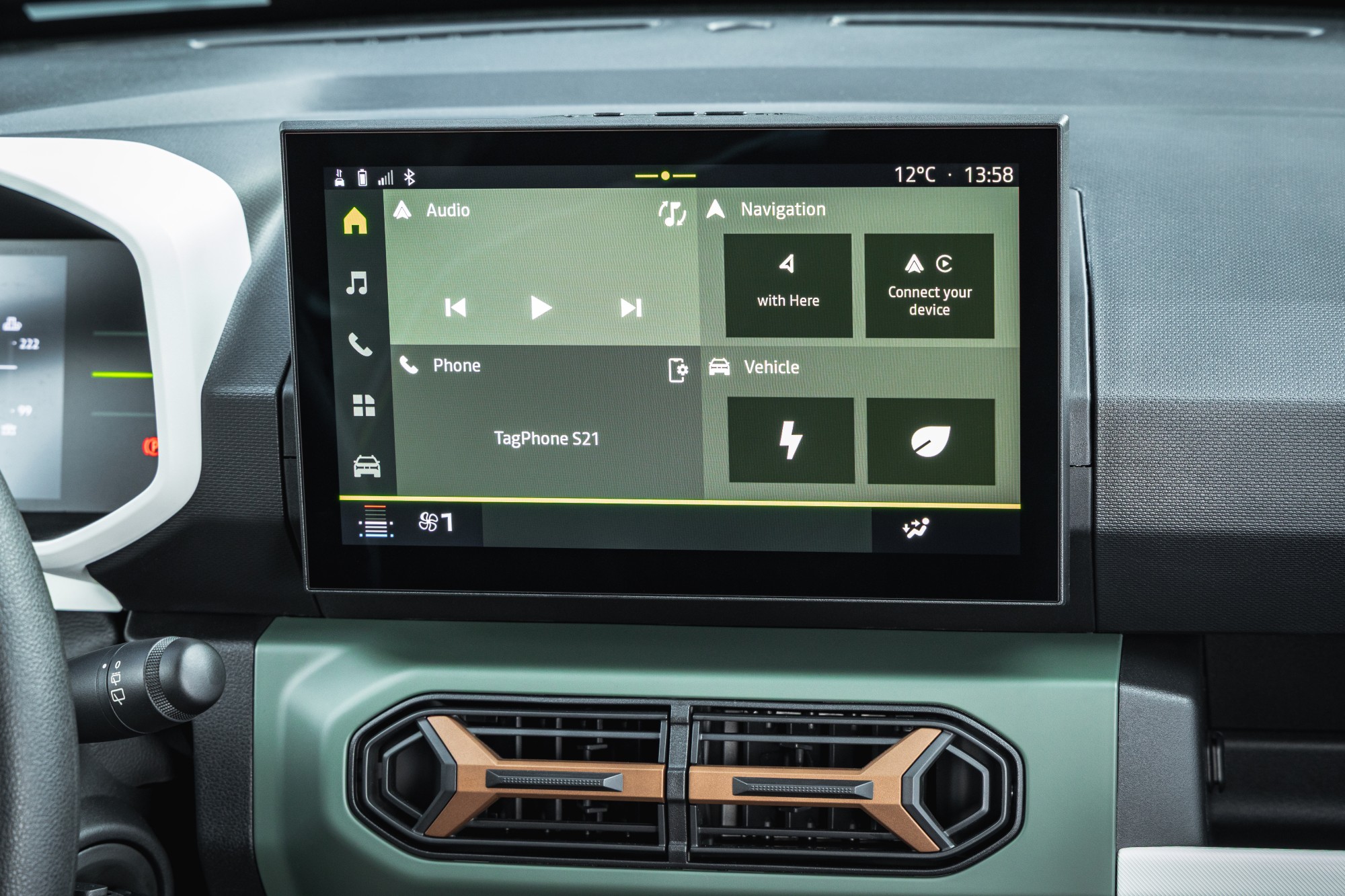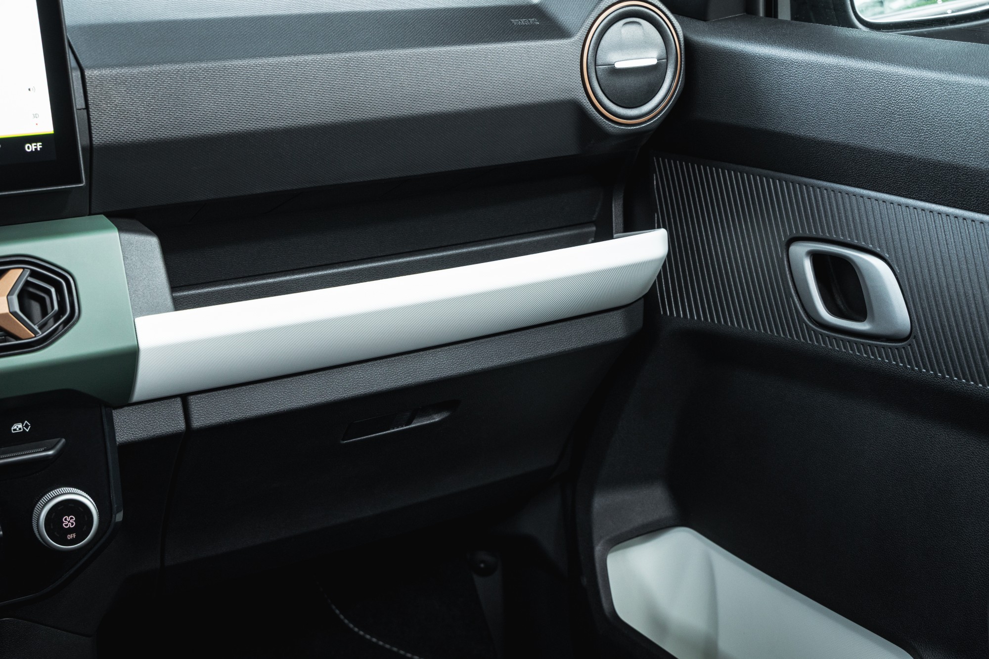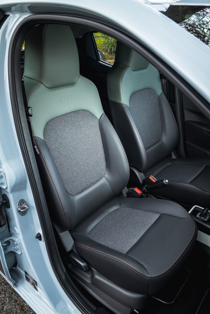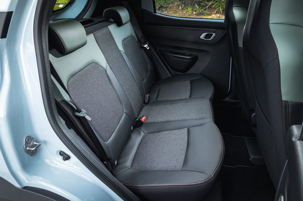 Un écran tactile de 10,1 pouces assure toute la connectivité que l’on attend d’une citadine en 2026. Dans cette finition, on peut compter sur Apple CarPlay et Android Auto, histoire de ne pas être dépaysé. Pour recharger ses appareils, on peut se reposer sur des prises USB-C. On adore le support téléphone si nécessaire, et bien sûr les très astucieuses attaches « YouClip », qui permettent d’accrocher ici et là différents accessoires disponibles. Sincèrement, on ne se sent pas si mal dans cette petite voiture. À l’arrière, on peut imaginer non pas voyager, mais emmener deux collègues pour aller au restaurant à 5 minutes du bureau. On est une fois de plus très étonné du coffre de 308 litres (+ frunk) de capacité dans cette Spring qui prend pourtant si peu de place.