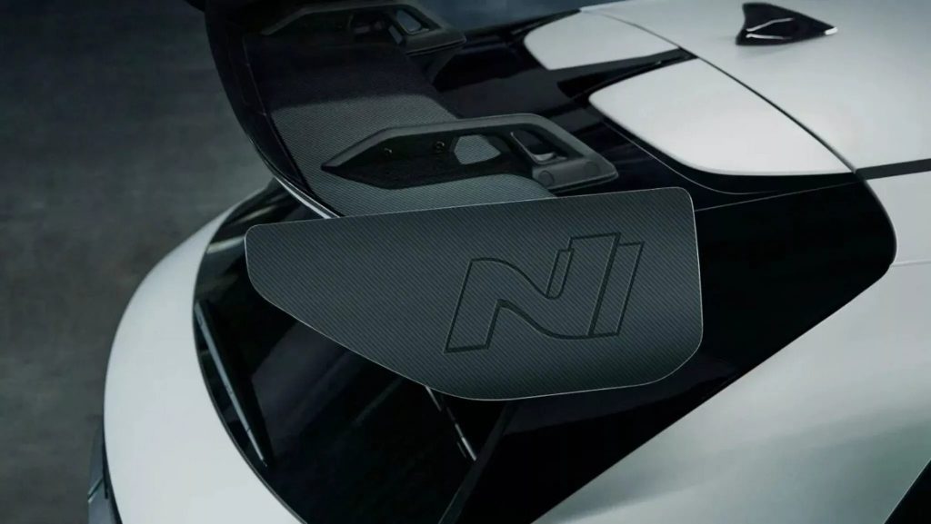 Visuellement, l’édition spéciale se distingue par un kit carrosserie en fibre de carbone plus tranchant et plus agressif, comprenant un splitter, des jupes latérales, des extensions de diffuseur et un aileron arrière en col de cygne monté sur le toit, pour se rapprocher des extravagances aero des bolides de Drift. Hyundai affirme que les pièces de l’édition DK ne sont pas seulement pour le spectacle, car elles offrent 93 kg supplémentaires d’appui à 140 km/h.