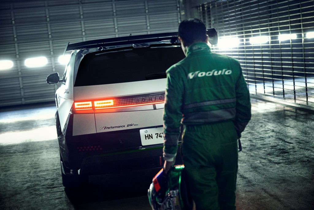 Au-delà des améliorations esthétiques, les ingénieurs ont collaboré avec Tsuchiya pour peaufiner le châssis. Bien que l’équipe ait testé plusieurs configurations de suspension, elle a finalement opté pour les amortisseurs à commande électronique de l’Ioniq 5 N de base, que Tsuchiya lui-même jugeait imbattables. Cependant, ils ont abaissé la voiture de 15 mm à l’aide de ressorts H&R, ce qui lui confère un centre de gravité plus bas pour une meilleure maniabilité.