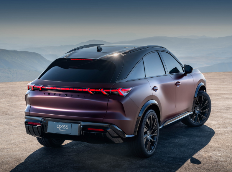 L’avant du QX65 Monograph incarne la puissance et la sportivité. Sa calandre tridimensionnelle, inspirée des forêts de bambous japonaises, adopte une texture plus sauvage et dynamique pour correspondre au caractère sportback du SUV. L’emblème de la marque s’y inscrit en volume, renforçant l’identité de la marque.
