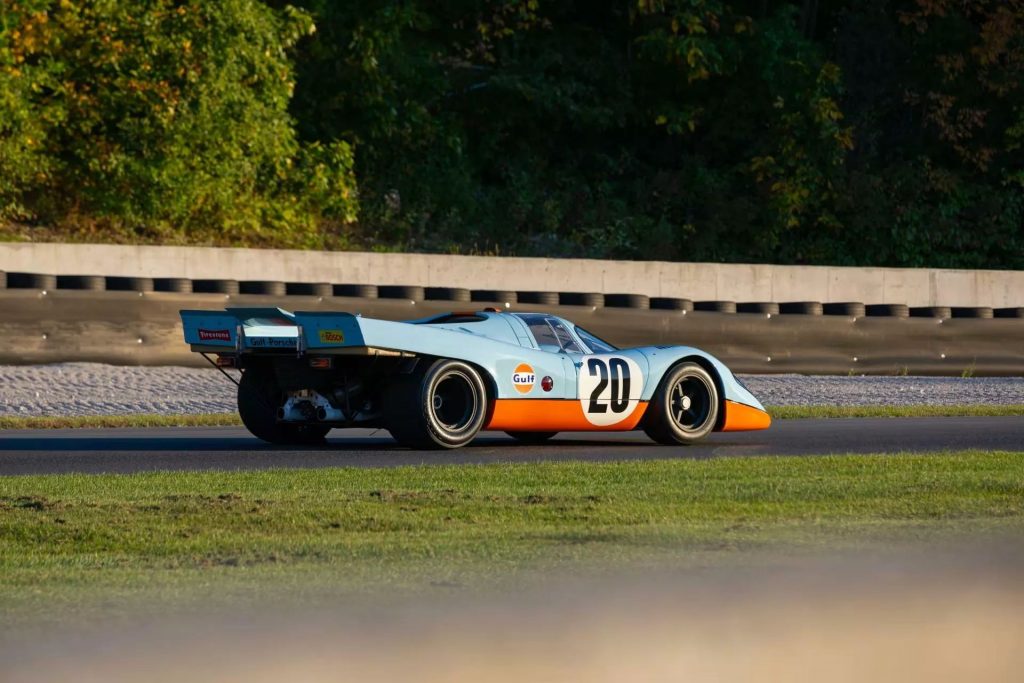 Cette icône des courses d’endurance à douze cylindres fait partie des voitures qui ont permis à Porsche de dominer le monde des courses de voitures de sport dans les années 1970. Seulement 65 exemplaires de la 917 ont été construits, et si tous sont extraordinaires, certains sont au-dessus du lot. C’est le cas du châssis 917-022, la 917K aux couleurs Gulf pour Kurzheck, ou « queue courte ».