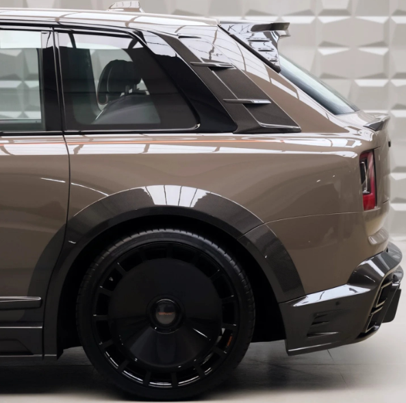La Hayula II ne fait dans aucune forme de retenue. Dès le premier regard, le SUV britannique perd son aura aristocratique pour devenir un mastodonte de style futuriste, transformé par des éléments visuels ultra-agressifs. La face avant reçoit un traitement spectaculaire : une calandre encore plus verticale, de nouvelles grilles texturées, des feux de jour à LED additionnels et une barre LED pleine largeur agrémentée de « winglets » pour accentuer l’aspect dynamique.