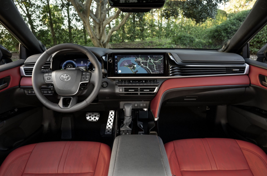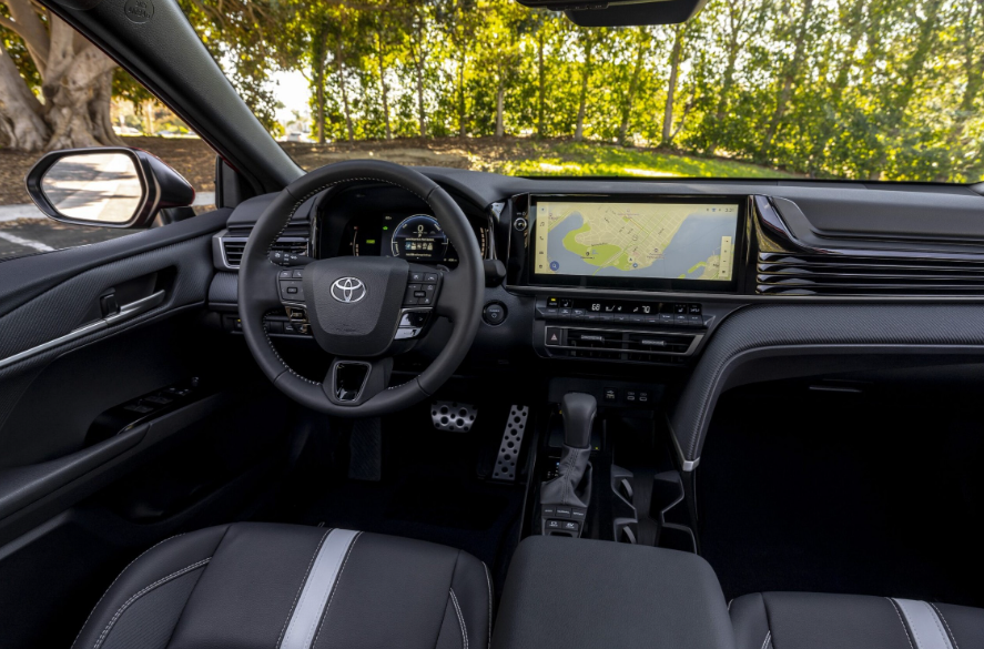 Sous le capot, la Toyota Camry 2026 est exclusivement proposée avec la cinquième génération du système hybride Toyota (THS). Il associe un moteur 4 cylindres de 2,5 litres à un groupe motopropulseur électrifié, produisant une puissance combinée de 225 chevaux pour les versions FWD et 232 chevaux pour les AWD.