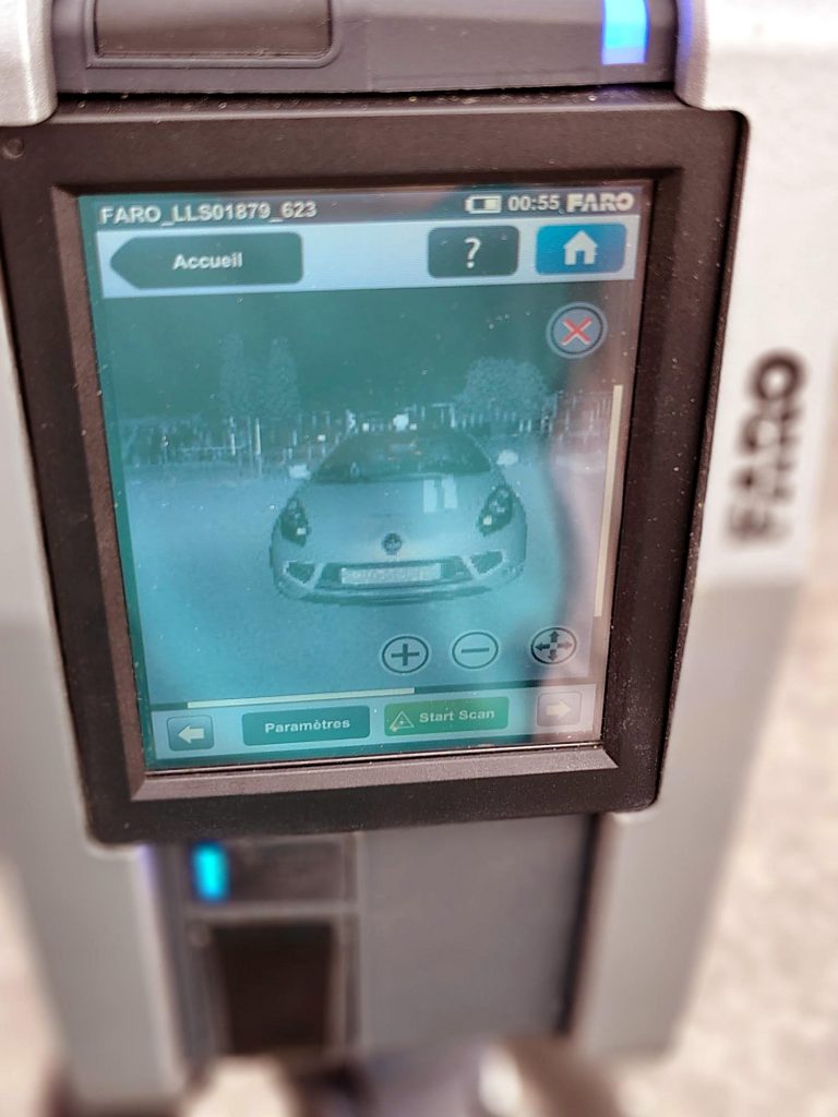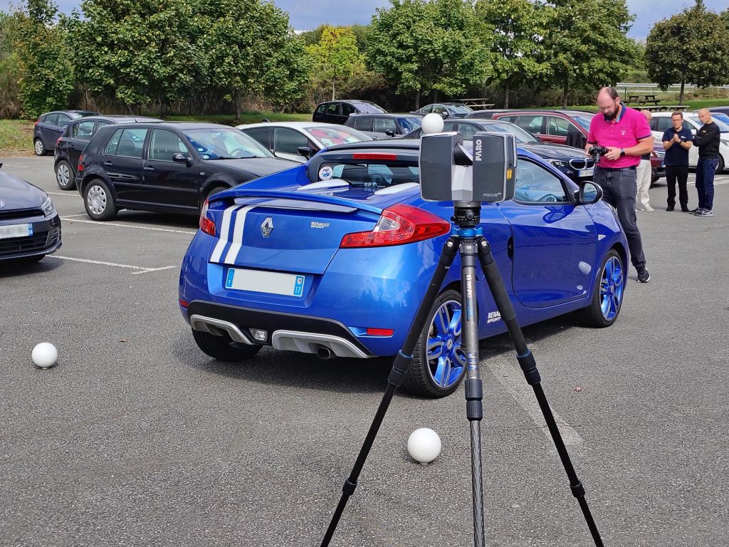 En effet, pour Arnaud, l’étape du scan n’est pas simple. La météo importe peu entre nuageux, sombre, lumineux, etc. Pour autant un franc soleil peut provoquer certaines réflexions qui vont empêcher localement le scanner de « voir ». Pire, la pluie est un réel obstacle. En effet, le scanner a une telle résolution qu’il scanne les gouttes qui tombent. On se retrouve alors avec un rideau dense de gouttes sur le modèle 3D. Le scan peut alors se réaliser en intérieur, à condition d’avoir de la place. Certaines fois des garages sont étroits et il faut « jongler » pour scanner le véhicule.